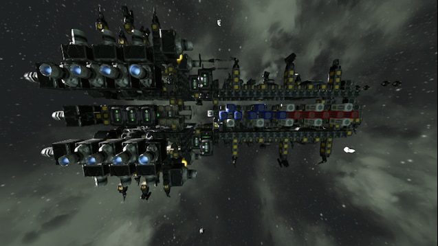 Interestingly, and I hope you don't "fix" it, after removing all the non-functional blocks, if you paste the blueprint in creative, even though there are MANY blocks that aren't connected to absolutely anything (they literally appear to be just floating in space, like the antenna in the "second pass" screenshot), you can actually FLY the ship as if the blueprint were complete. The only difference is that the ship "handles" differently, because it weighs less (a LOT less in the case of this ship which uses, primarily, heavy armor)