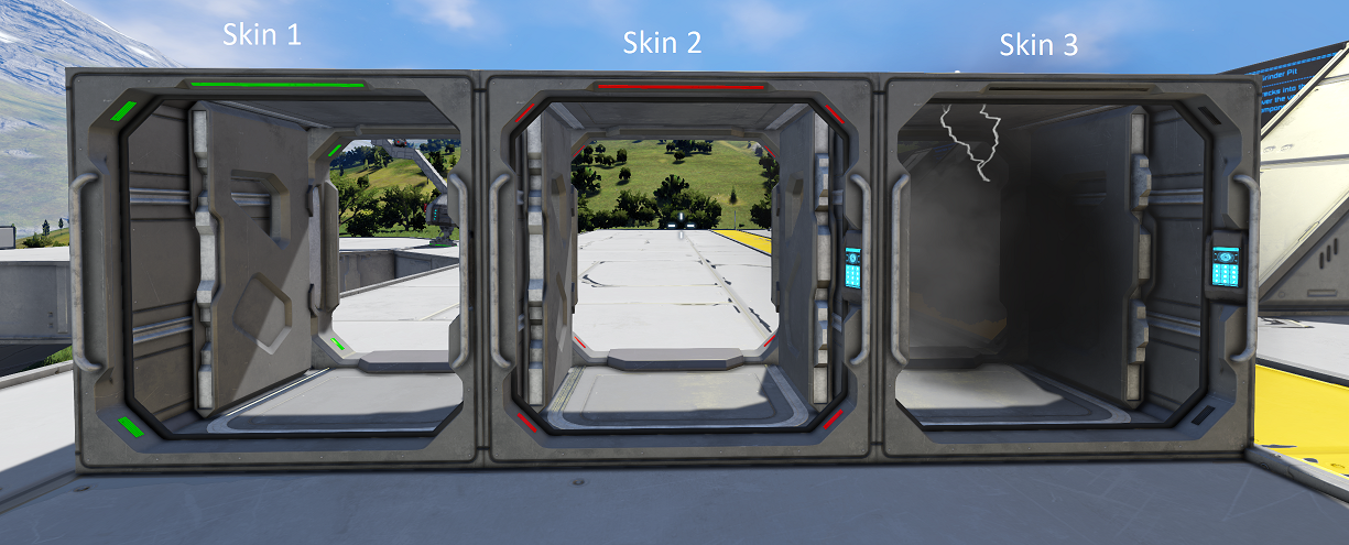 I have always noticed that in space engineers, when the power is turned off, the decorative lights (green, skin 1) turn red (Skin 2).
