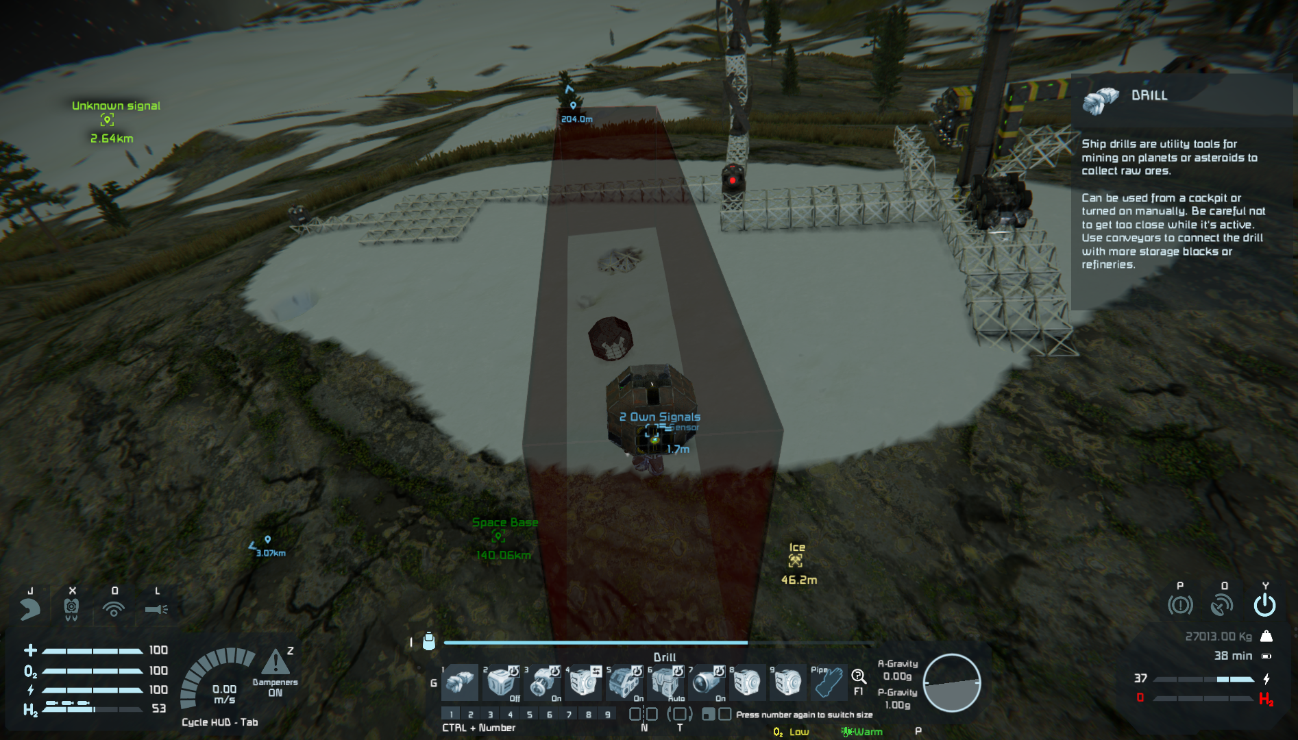To the left of my position there are some remnant blocks from my old base position that is covering a hole and a sphere build for the purpose of a projection. Now I build those previously so I can't understand why it's identifying them as enemy.