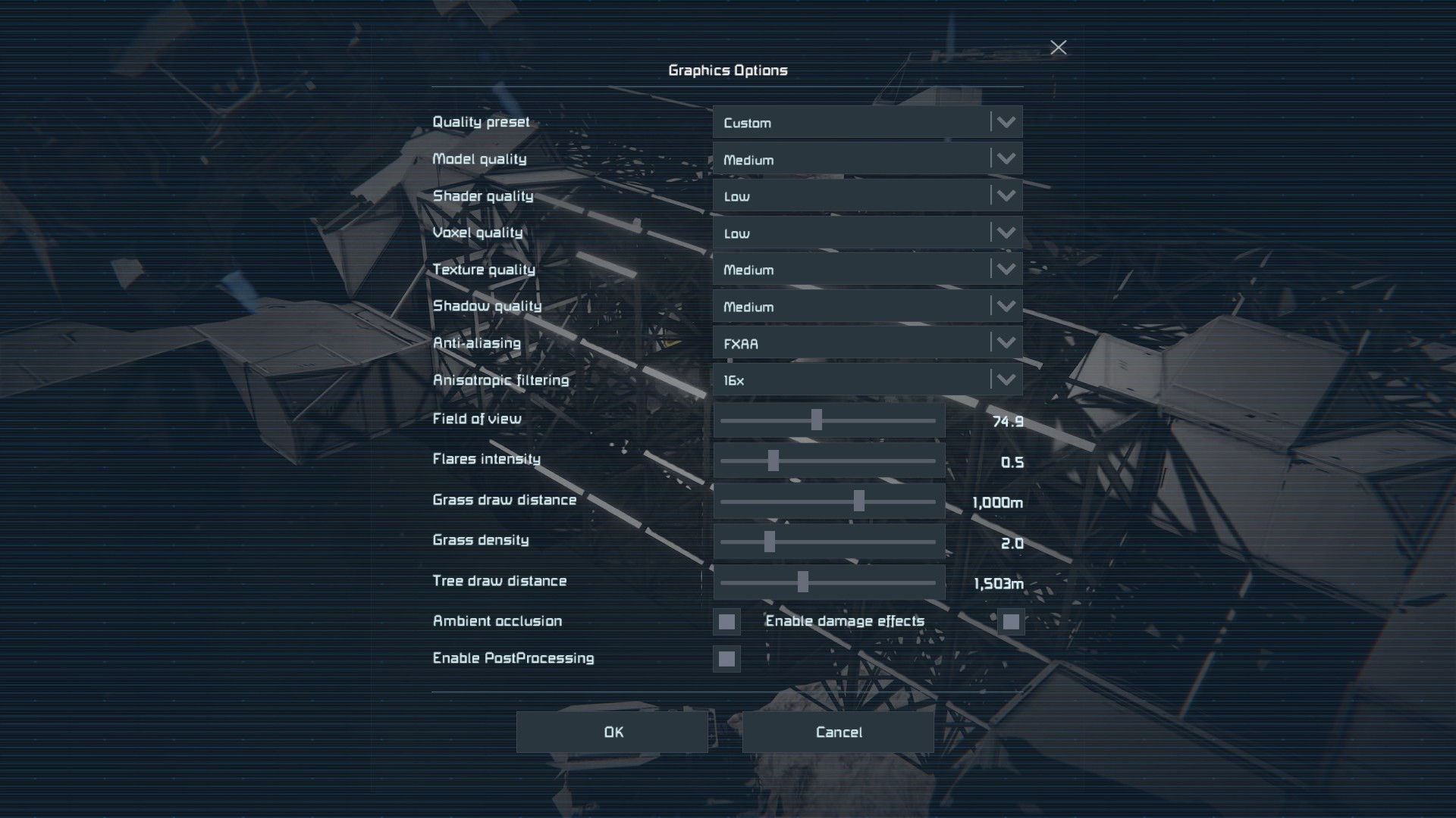 This is the graphics I am running at: Also its gets brighter during the day on the planet.