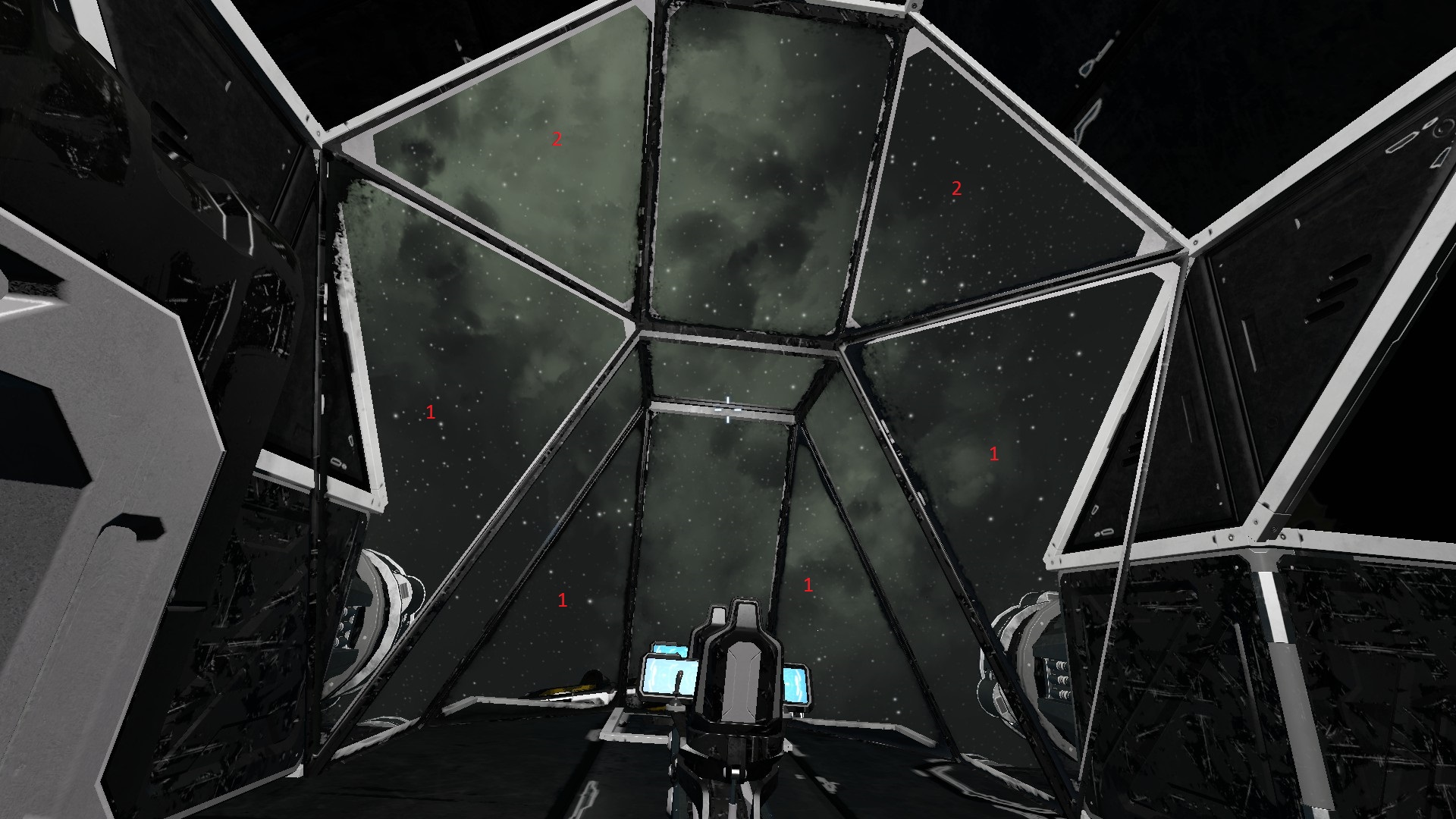situation: got a pressurized room with slope windows, put the character against the window from the inside and the outside of the room (activating "J" from inside and without from outside)