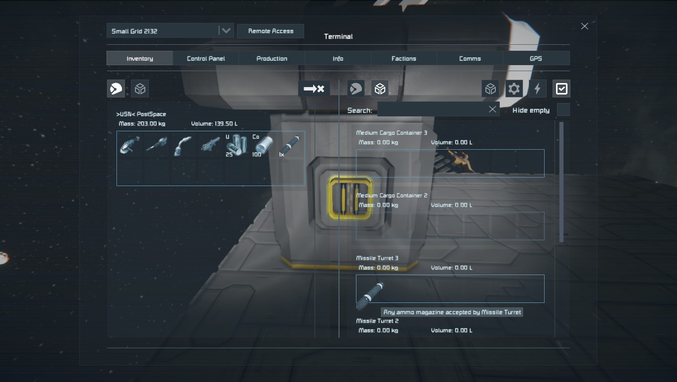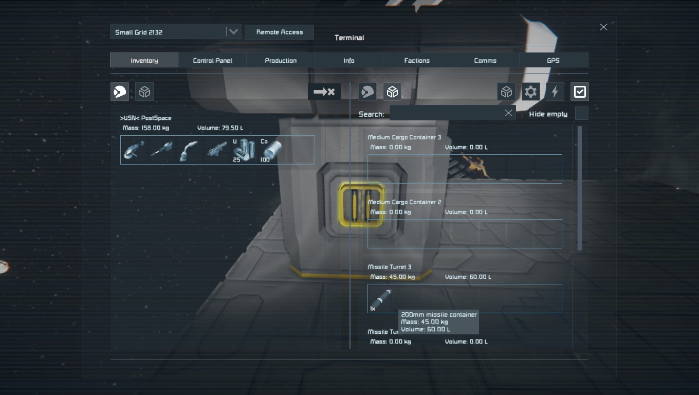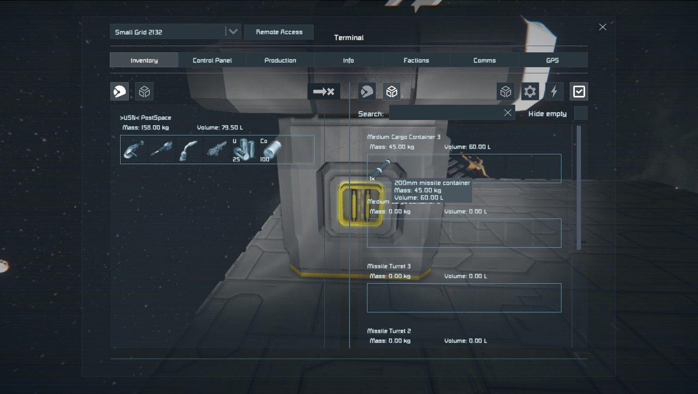 When I try to move a missile through a small conveyor system from a connector to a medium cargo container, it won't work. However, if I put it directly into the medium cargo container it will work no problem. I had a friend try it on his server and he had the same problem. I have attached multiple pictures below showing that I have tried it multiple ways to make sure that I have been doing it right.