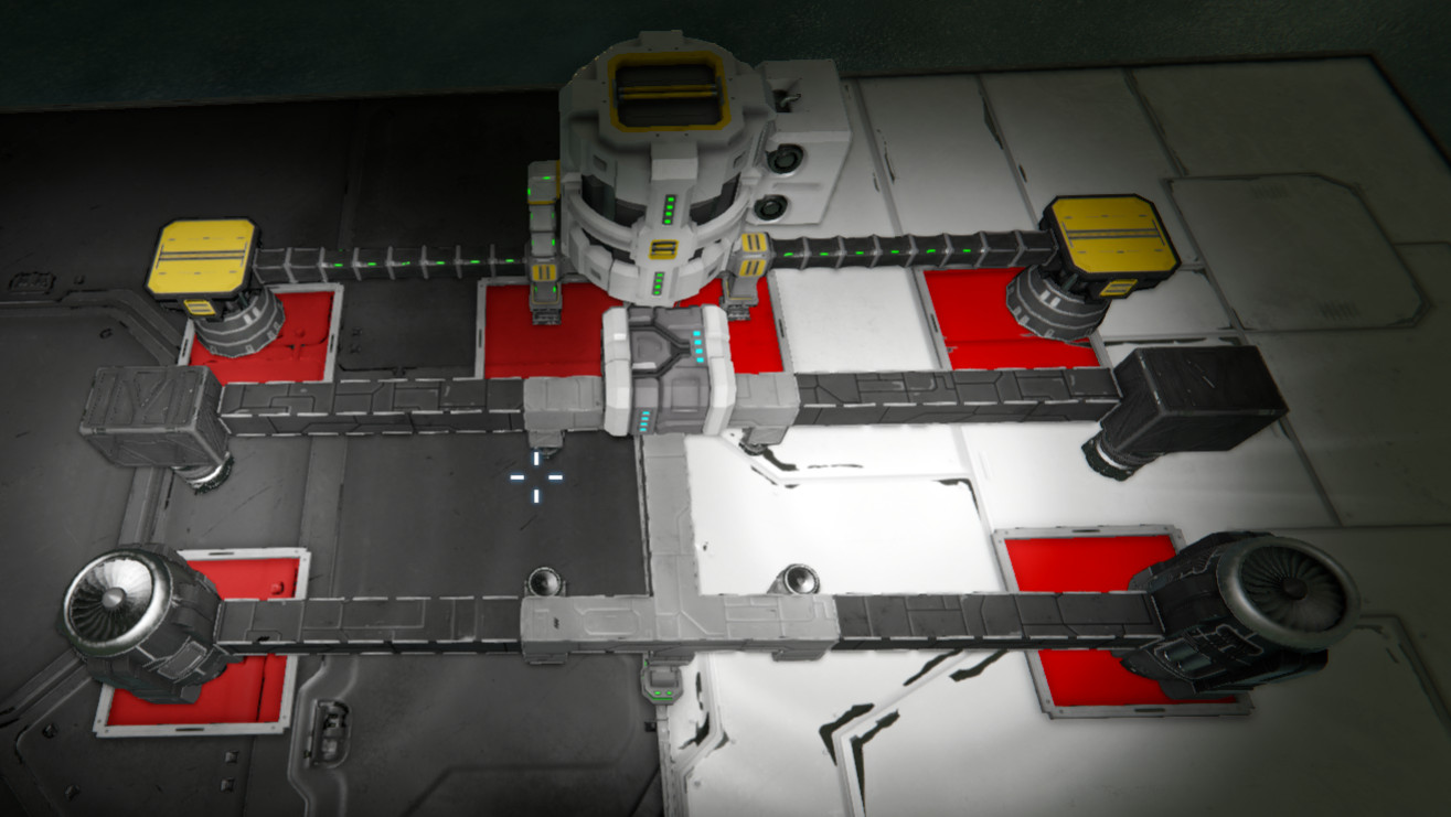 All testing was done vs light and heavy armour at a distance of 1, on Earthlike planet with thruster override set to 100%, on the grid attached to this report. The white pad is light armour, the black pad is heavy. All red blocks were damaged by thrusters.