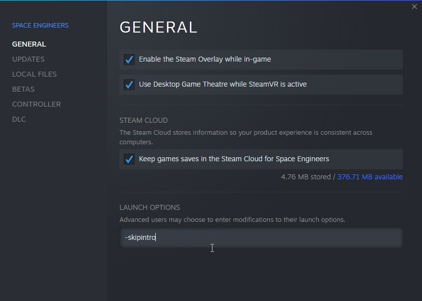 2. And/or rename or delete this folder: ":\Steam\SteamApps\common\SpaceEngineers\Content\Videos