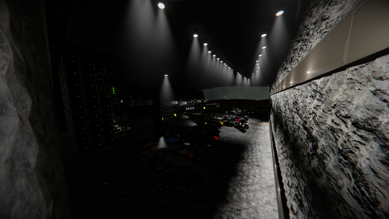 So I was working on a big project when I noticed something strange. When I placed approximately 100 spotlights to light up my huge hangar, half of it wouldn't light up. All of the spotlights are on default settings and my in-game graphics settings are set to high.
