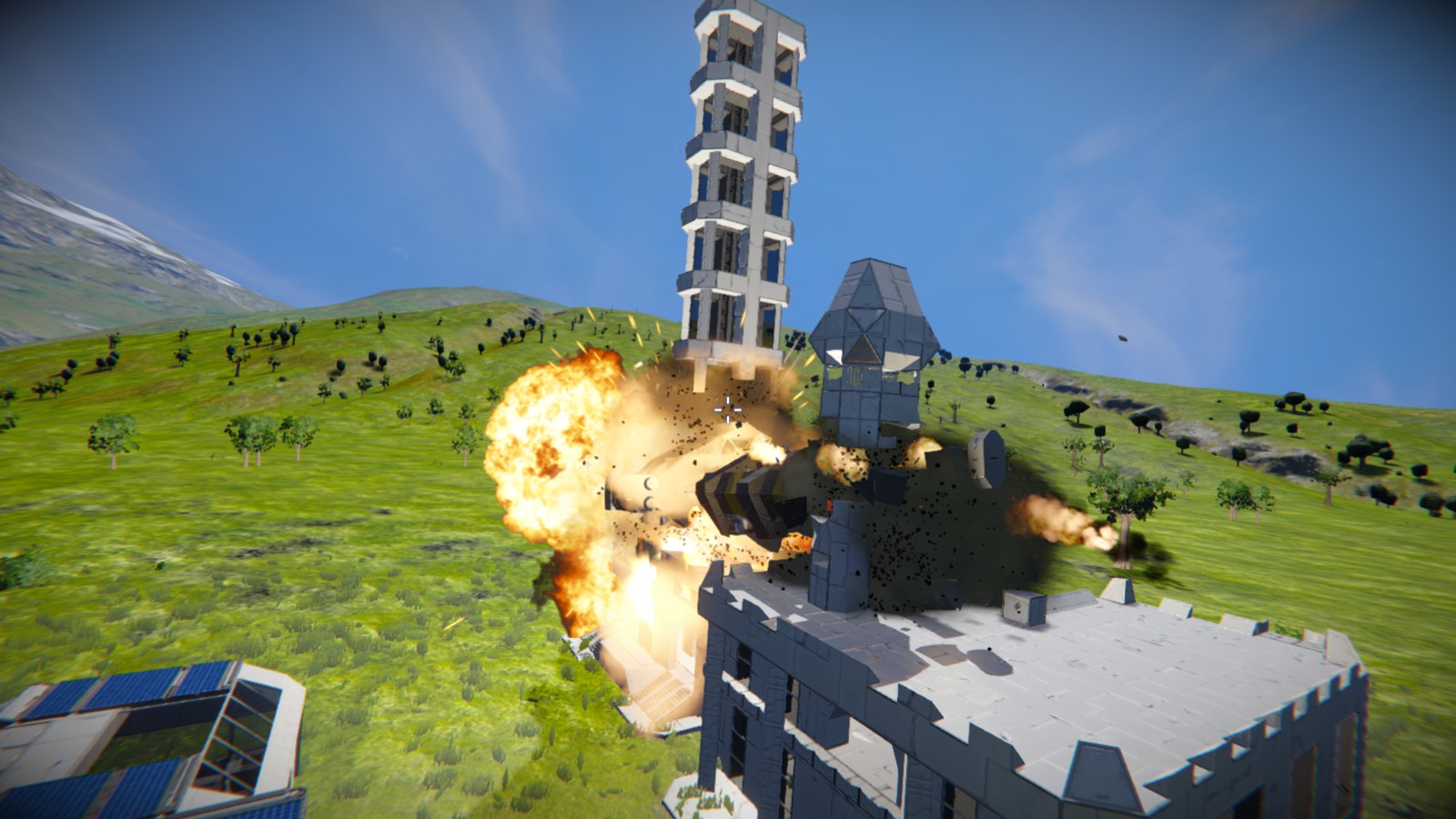 Should of included these in the first post but this is what I'm talking about. Damaging a static grid and cutting it doesn't fall even with that station setting on that make static grids fall. The smaller tower on the right corner crumbles but the tall one floats taunting me...