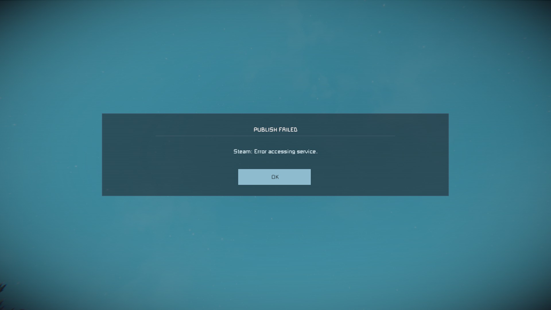 Hello I have been having this problem for the past few days. I am unable to post blueprints to the workshop and I keep getting the same ambiguous message. Steam: Error Accessing Service. I hade posted to the Steam discussions hoping someone had a fix but with no luck.