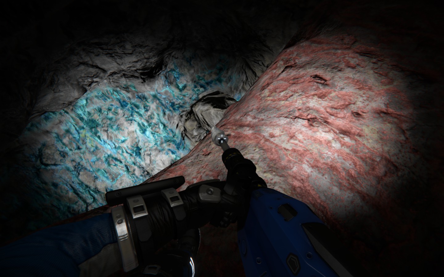 This started as an art project under ground, (first two shots) I found 3 resources really close to each other, and the intent was to mine them out, and then spectator cam a bunch of screen shots showing off the veins.
