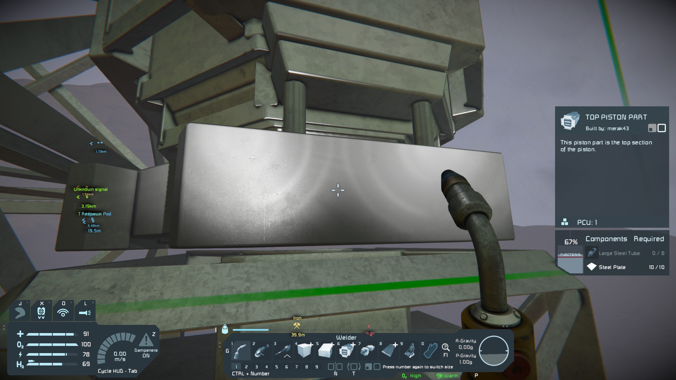 For example it shows you need 4 large Steel Tubes but when you plase the piston it will need 12 in total.