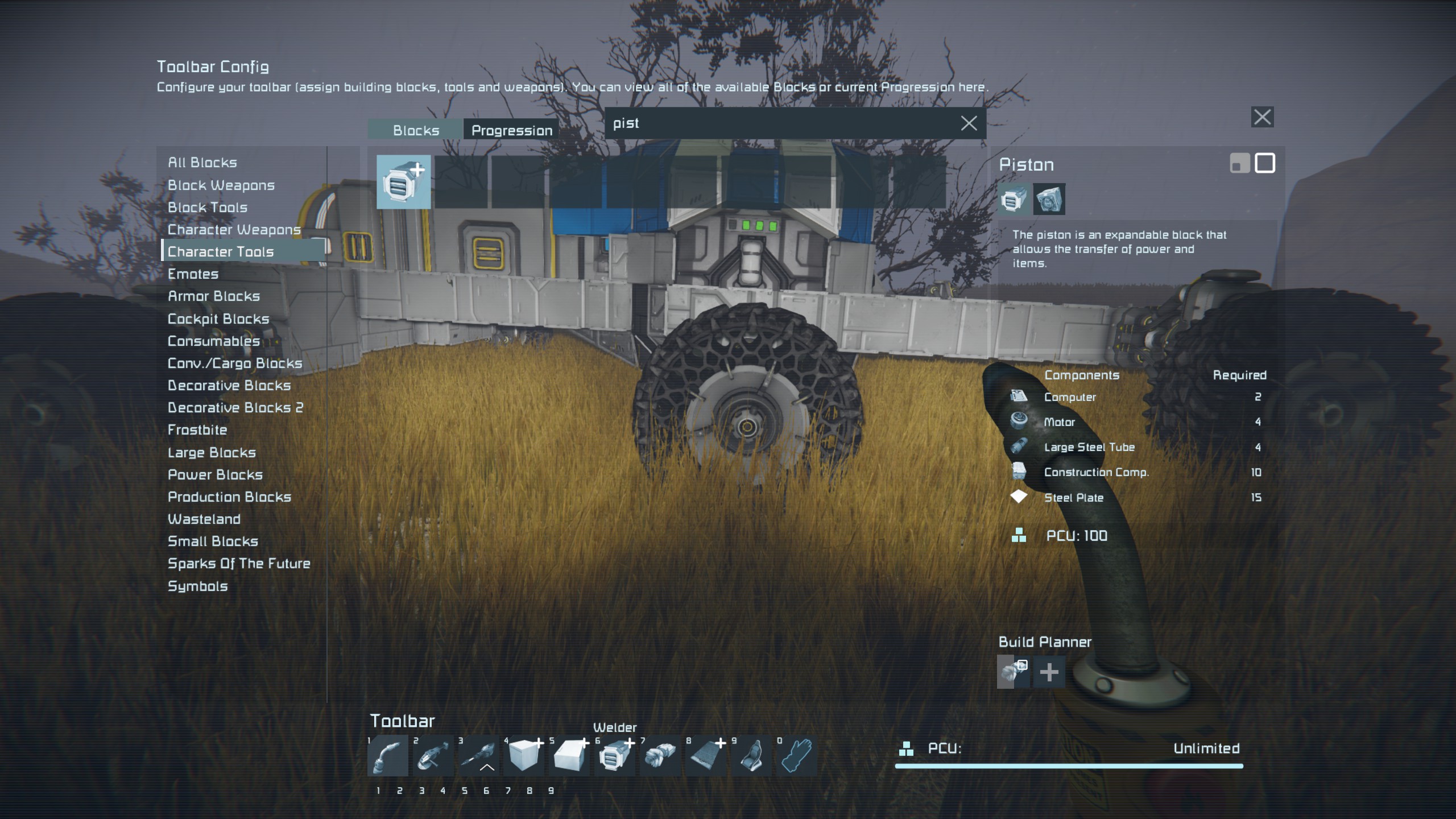 Toolbar config shows incorrect components needed on pistons