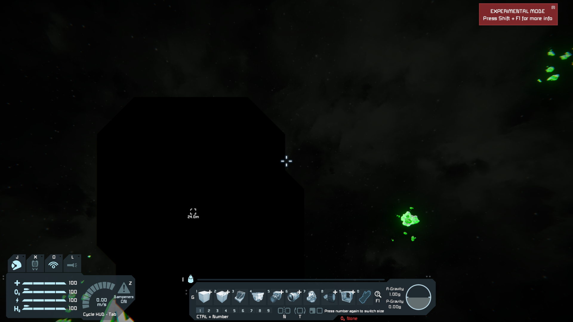 After loading a game file, black shapes (they appear to be hexagons, not sure if that matters) fill everywhere that there are either blocks or asteroids. This is regardless of the game file that I load, restarting the game, death, reloading textures and models, etc. This was not due to an update (that I am aware of), as I haven't updated in a while (there isn't an update to install either). I am still able to look around, move, even interact with the blocks (I know that I am able to hit walls and asteroids, unsure of the ability to still use tools though I imagine that is unaffected). These black spots move around and are not constant, though there are always enough to completely cover any asteroids or grids. The star background is unaffected by this, although random spots still appear the majority of stars are visible, and any dots blocking a portion of the background tend to move out of the way randomly. I have attached the game log and images for reference (there isn't much to see but it may be helpful).