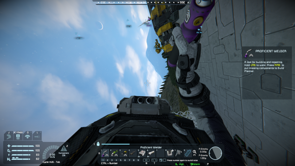 On a tangentially related note, It'd be nice to have an option (a keybind would be nice) to turn on/off the 'auto-leveling' which happens when you toggle the jetpack. As it stands I look where I want to fly, turn the jetpack on, have my view rudely pulled away from me, then have to point back where I was looking. (Same goes for turning it off). Especially irritating when using the jetpack in frequent bursts.