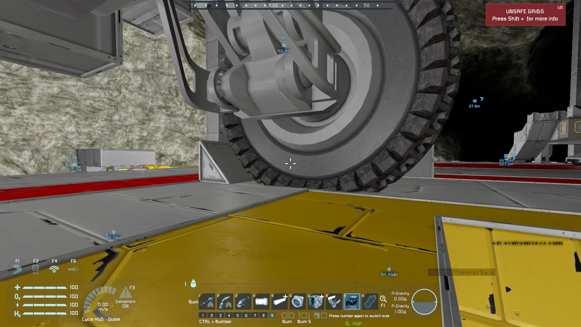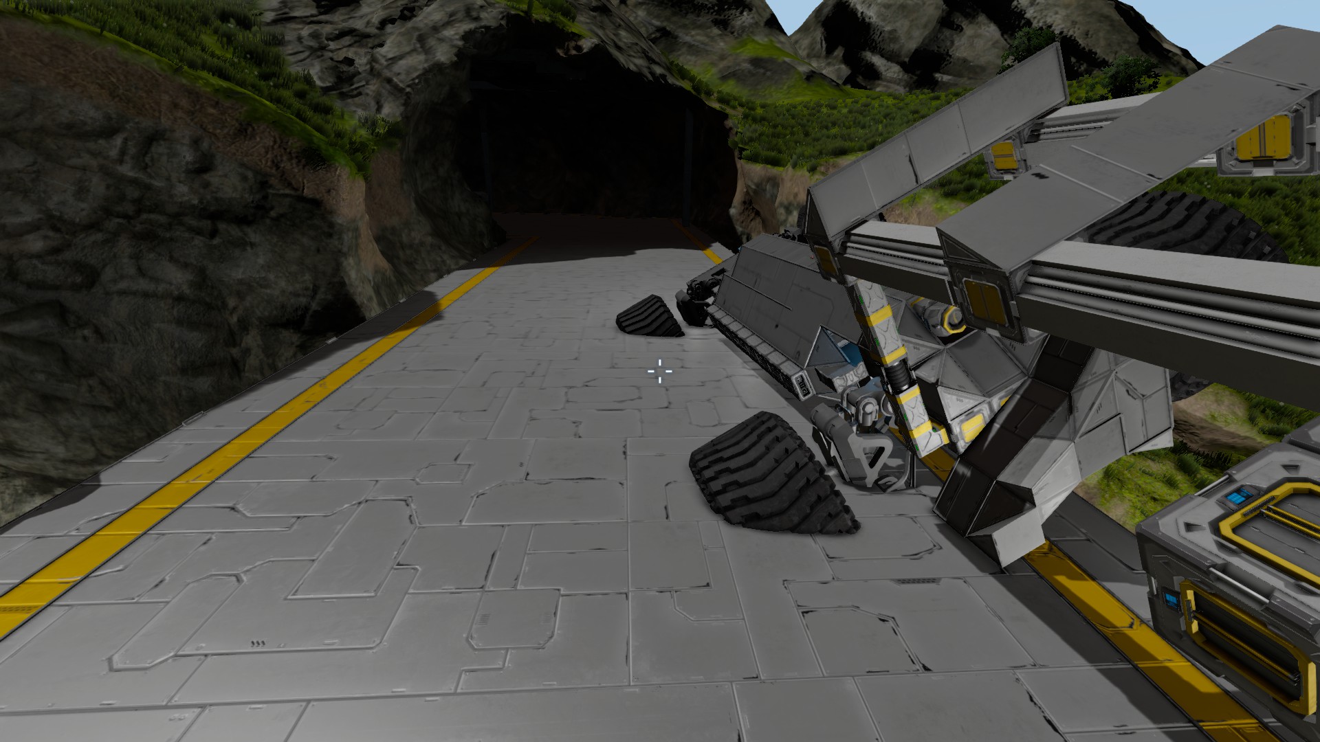 Built a mining vehicle. Drove around for a bit. Tried to go back to the dump point on my station. The wheels would start falling through the grid, and eventually I was unable to move the vehicle because it got stuck on something, and then eventually rolled more than halfway into the station grid. I had to go into creative, save the cart, delete it, and respawn it. Have had this happen multiple times.