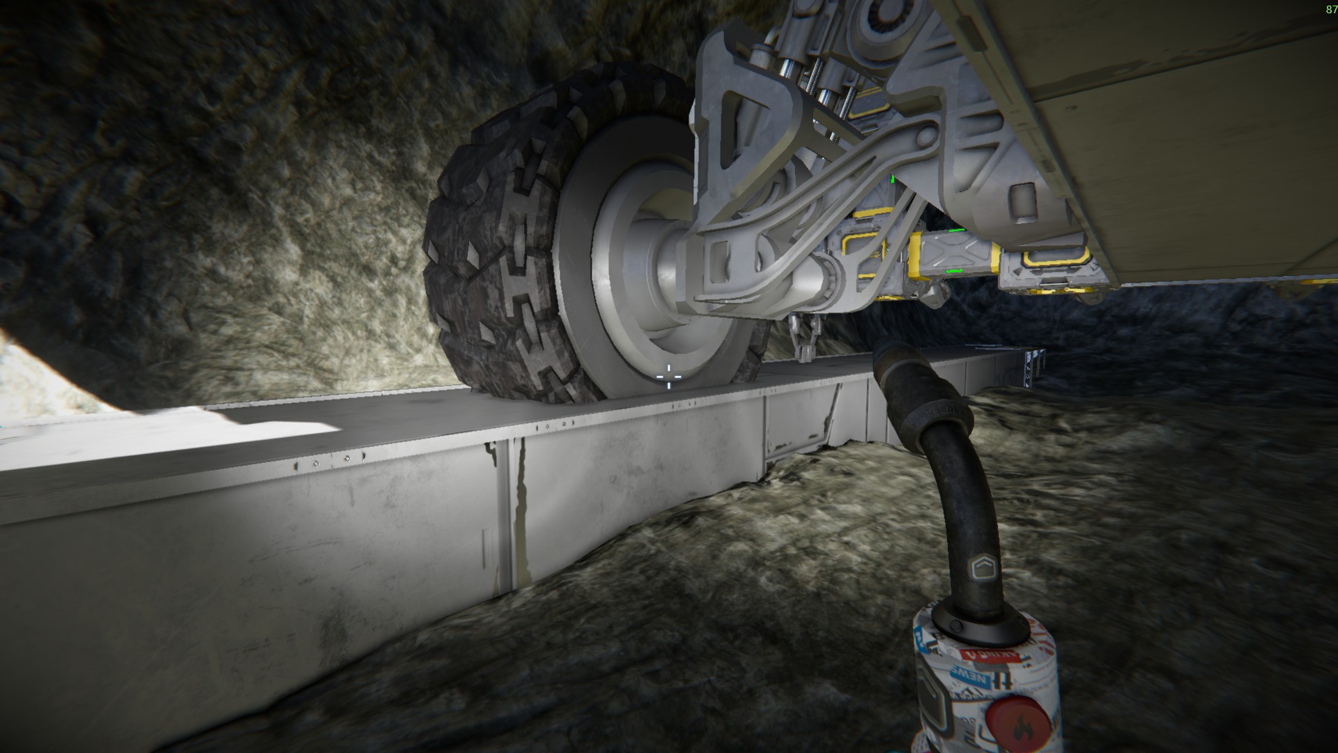 But wheels sometimes pass through armors and cause big clang. Seriously, making a simple railway shouldn't be so difficult. Logic I use in my system is valid, but bugs make it overly complicated. I got really annoyed with tweaking suspension settings just to prevent clang. I was seeking the mistake in my design.