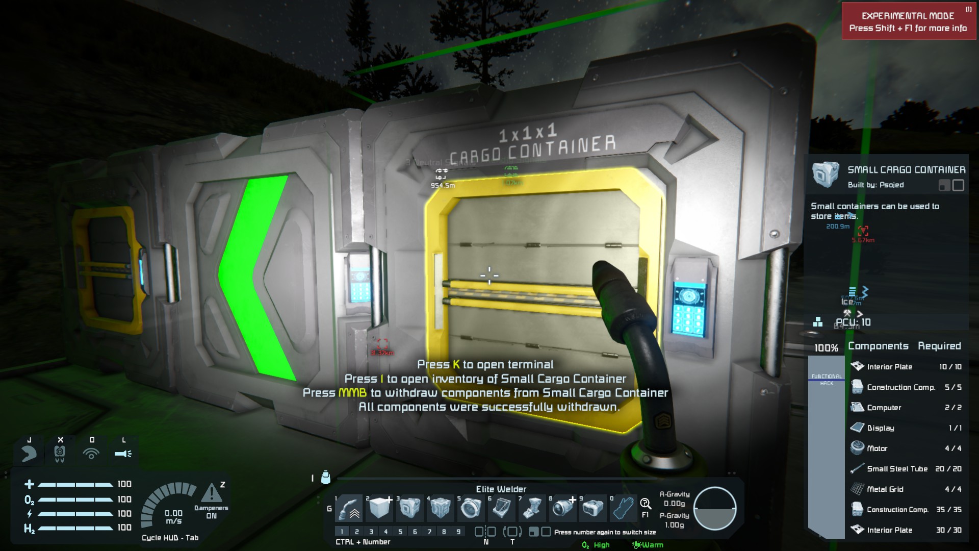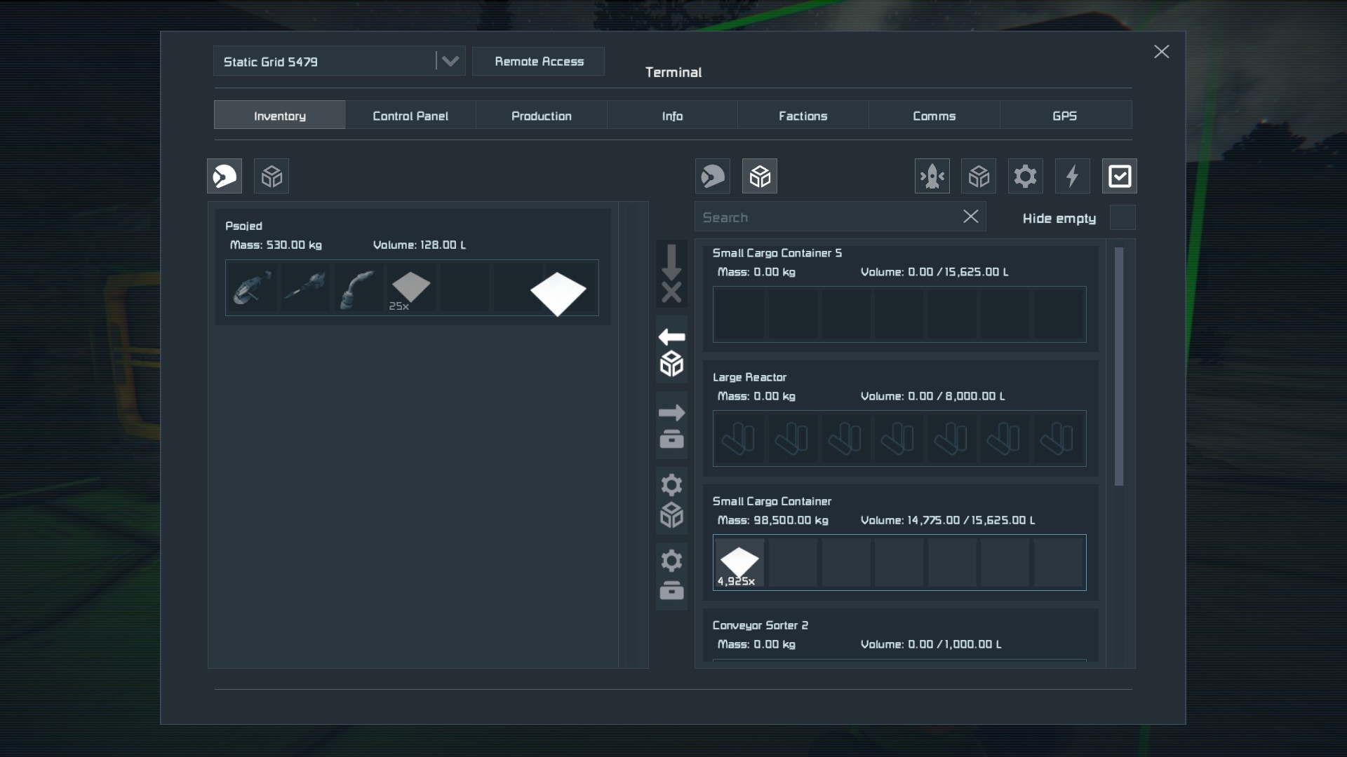 You can see that I can withdraw steel plates for Build Planner, even though you cannot access the Small Cargo's inventory because of the Sorter block in the way.