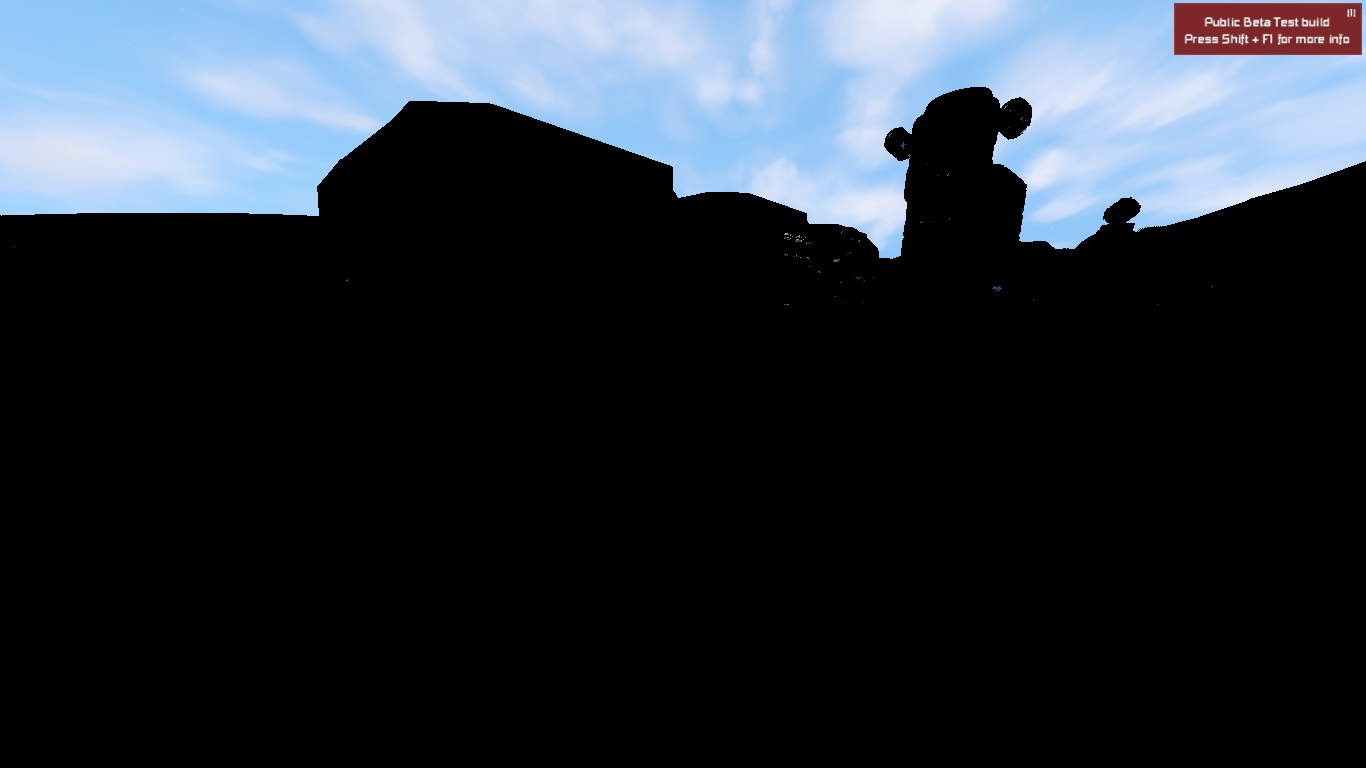So, when I enter a world and the computer renders me the ground and anything outside a closed structure, even with glass, it becomes all black and I see only some colored reflections and the sky / space, even if I re-enter the structure. The first few times showed only totally black shapes except for some strips of sky or space, but disabling post processing I got the first situation