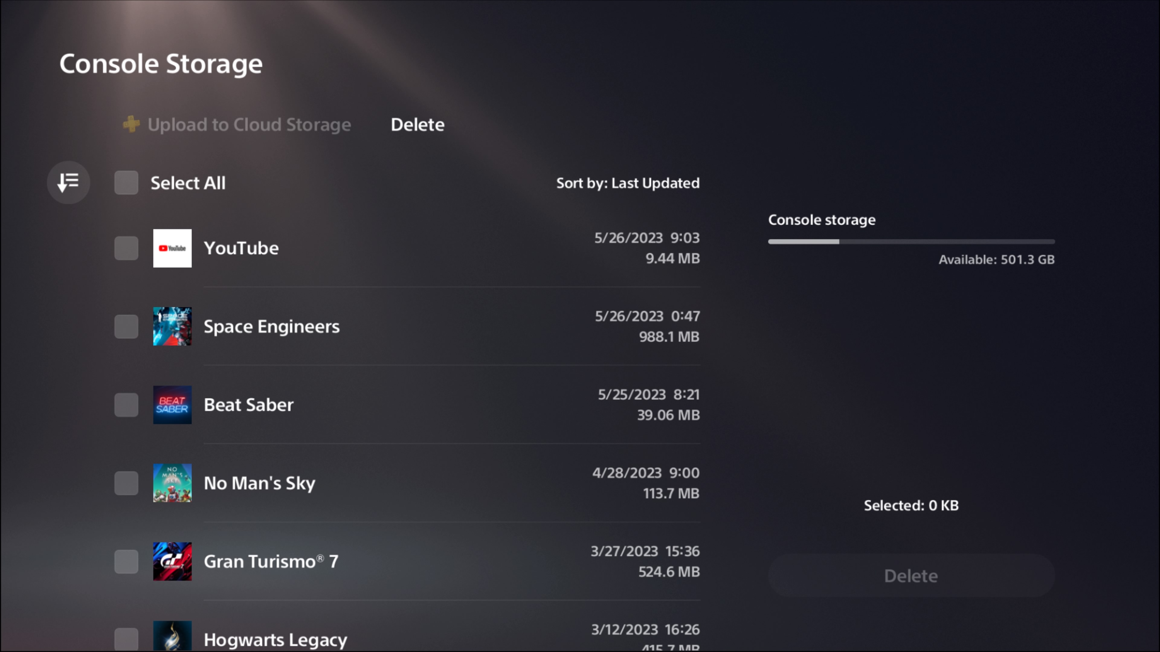 Could you please attach a screenshot of a menu located at Settings/Storage/Console Storage/Saved Data?