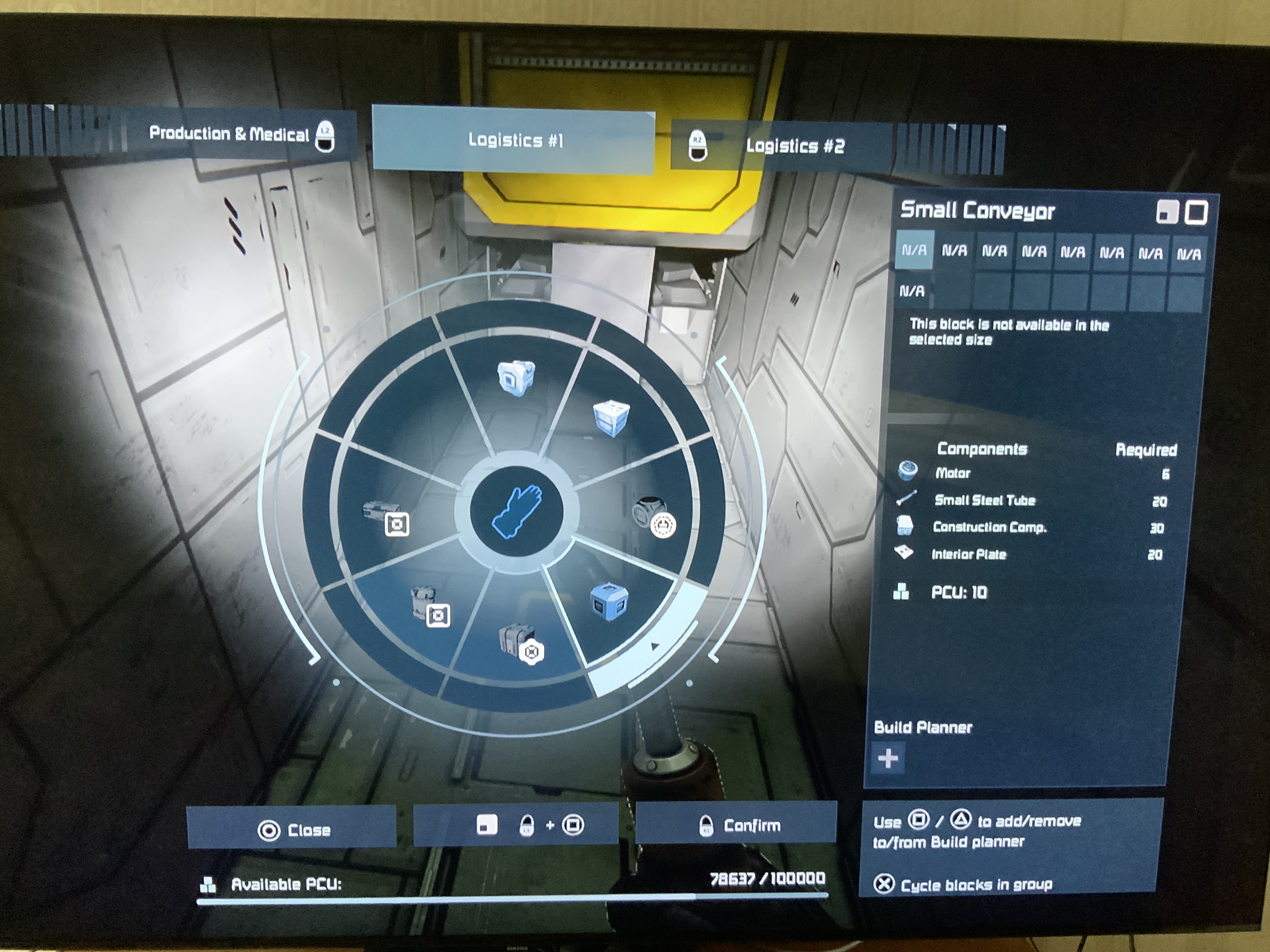 Could you please elaborate on the issue? What do you mean by tasks that change the game';s environment state, could you give us an example?Normally, only blocks that don't have a Small or Large grid version are displayed as N/A when that version is selected in the radial menu. Pressing Lb+Square changes the selection. Does that make the blocks visible for you?