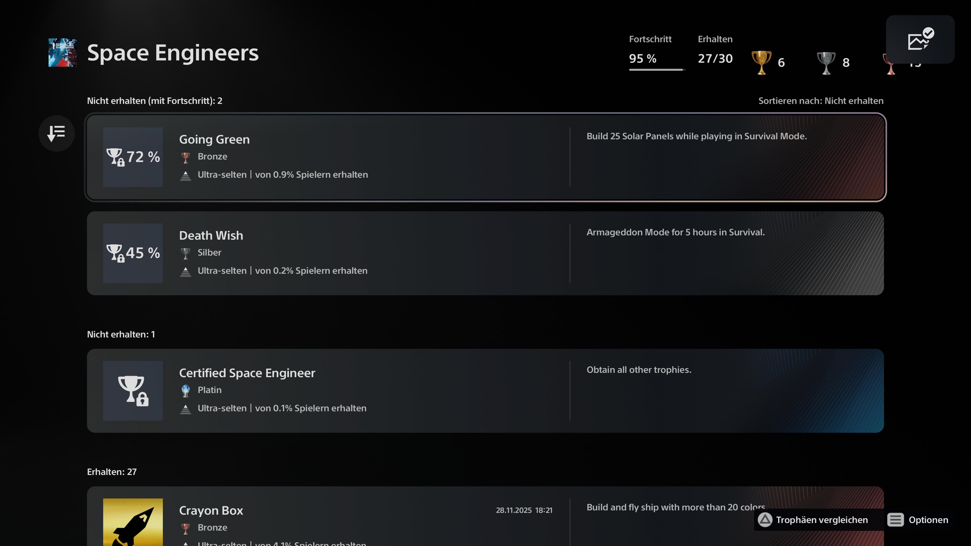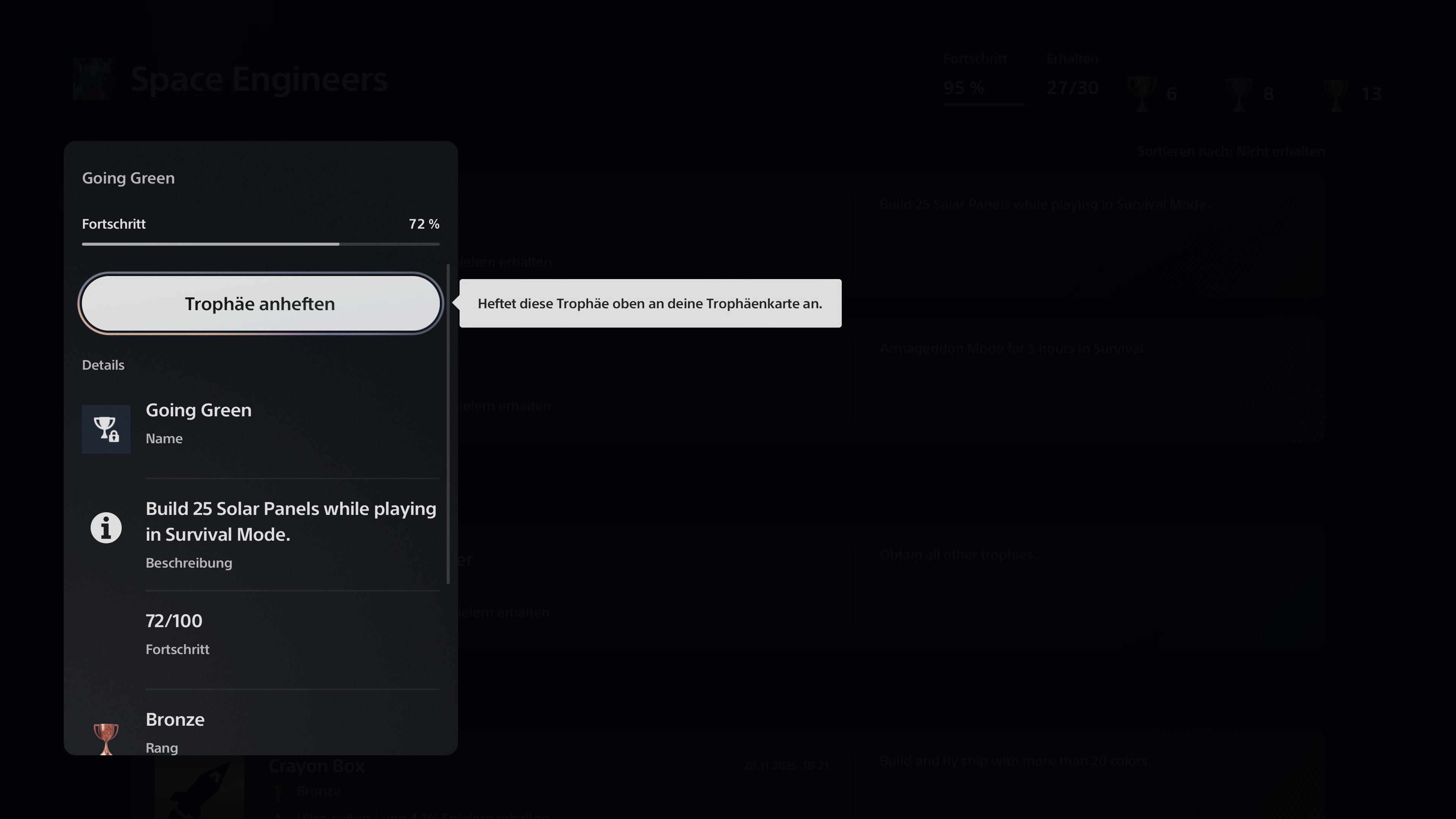 The game released almost 3 years ago on PS5 and the trophy tracker for Going Green is still broken. Mine is stuck at 72% no matter what I do (see images). The issue persists for years now and apparently no one ever bothered to fix this. So I'm kindly asking you to finally patch the issues with the tracking of said trophy so players can unlock the platinum for the game.