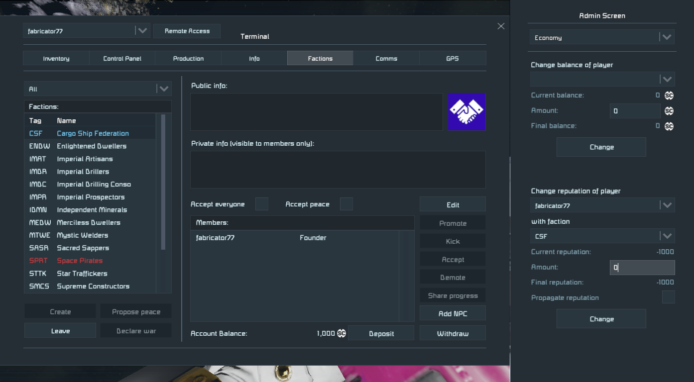 I noticed in Space Master that I have -1000 reputation with the faction I created. Surely it should be zero, or some positive number. Attached it screenshot of the faction screen, and the Space Master Economy tab.