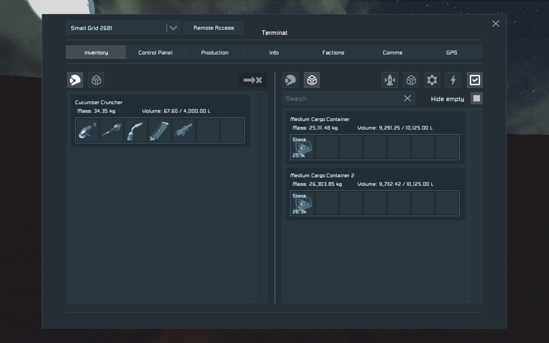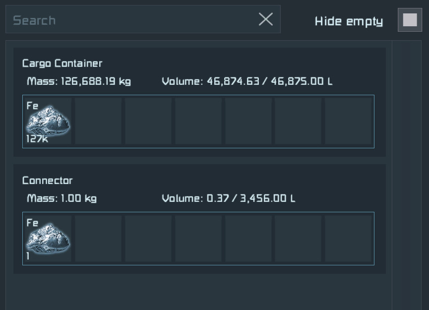 Start mission with default settings on the same planet as I had used my mining ship, in this case Mars. Paste in my ship and make sure it works correctly. Go mine a bit of rock so that the cargo inventory is almost full and observe the total ship mass. Save and exit. Change the settings for the save file to "Inventory Size : 10X" and load in again. Observe the new ship mass even though no more rock has been put in.