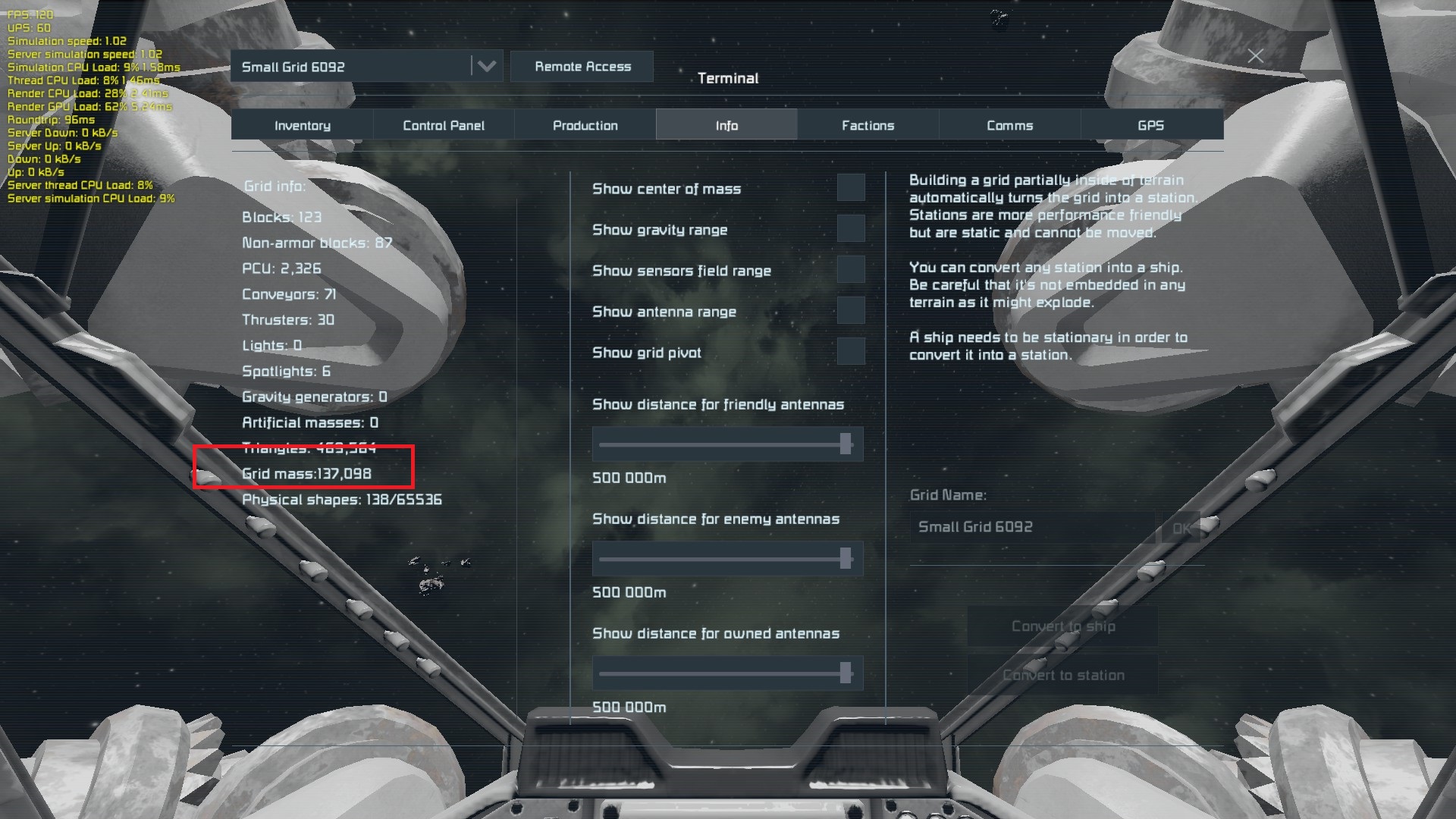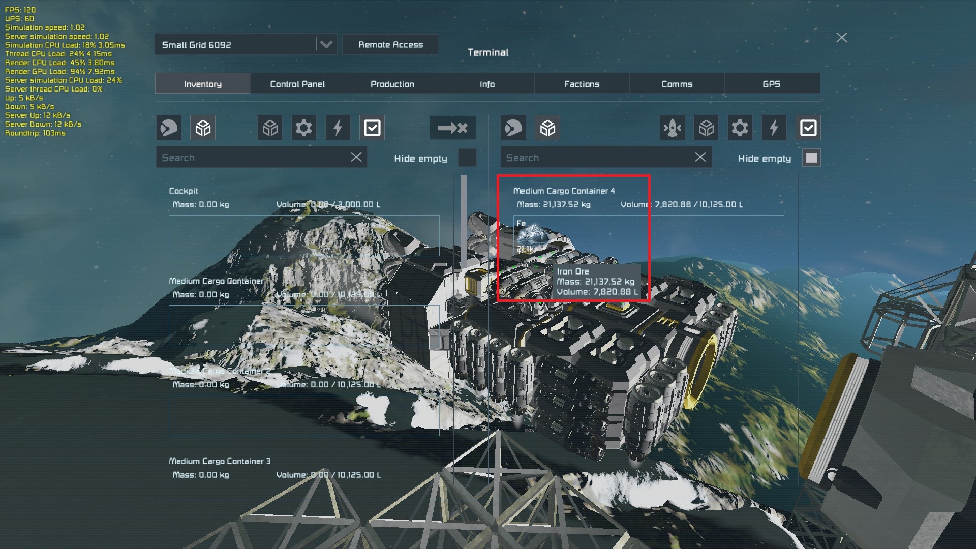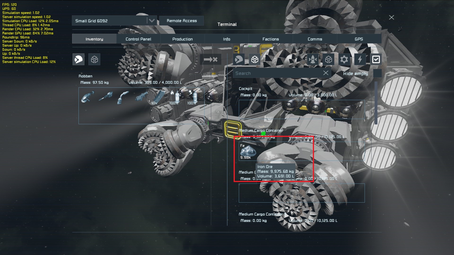 Iron ore weight on 10x Inventory size is shown as 10.000kg in the container but the grid mass will get 100.000 kg instead of 10.000 kg.