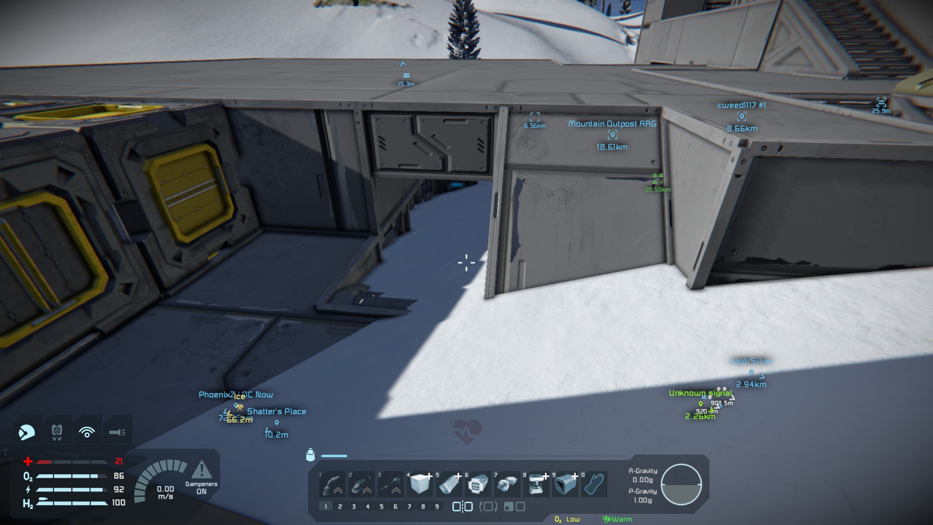 Then this morning I log in to the game and my base is filled with snow, strangely looking much like the mountainside when I first moved to the area.