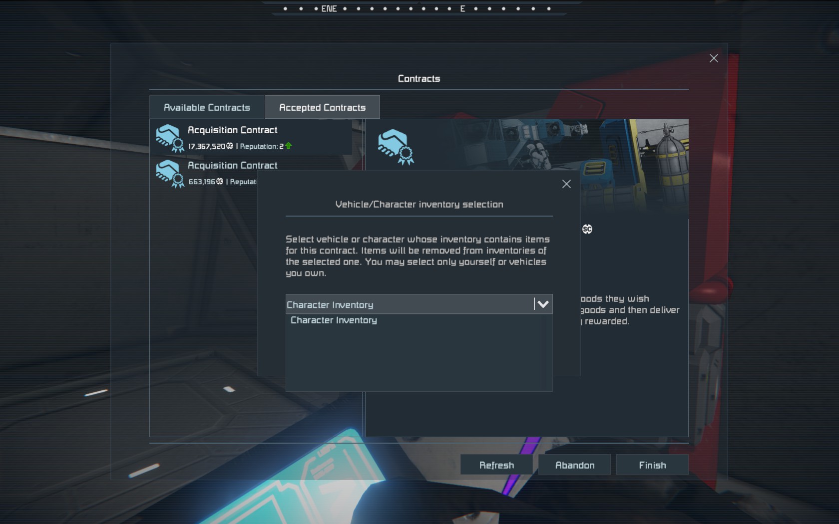 Ship inventories not available for acquisition contract completion / unable to dock with NPC station