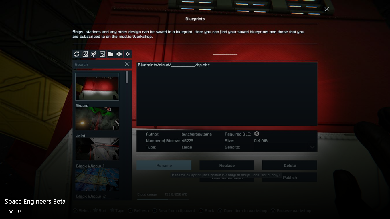 10.06.2020 Xbox one X. Beta updated. created blueprint. normally gives a random name I.E. large grid, but now just has dashes, see picture.. try to rename but nothing changes, unable to upload to mod io getting failed message, I have another version of build uploaded already the only difference is timer blocks are all programmed now so its not a piston rotor issue. just to add, after trying again, once i hit ok to rename the blueprint it disappears as if i never created it. added pics with stats PCU etc
