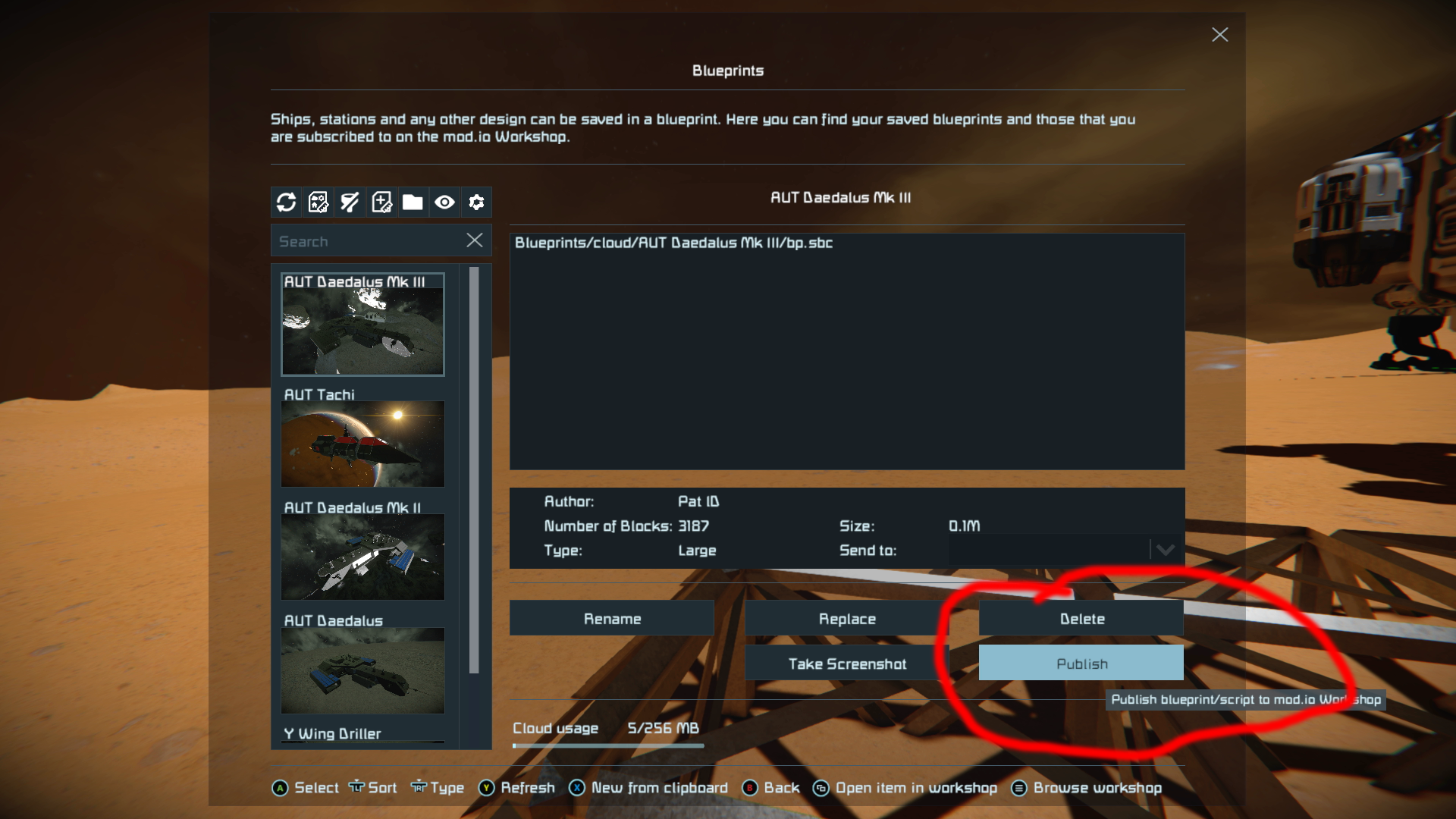 befor this update we just had to press the "Menu" button on the Controller to publish a blueprint/world to Mod.io