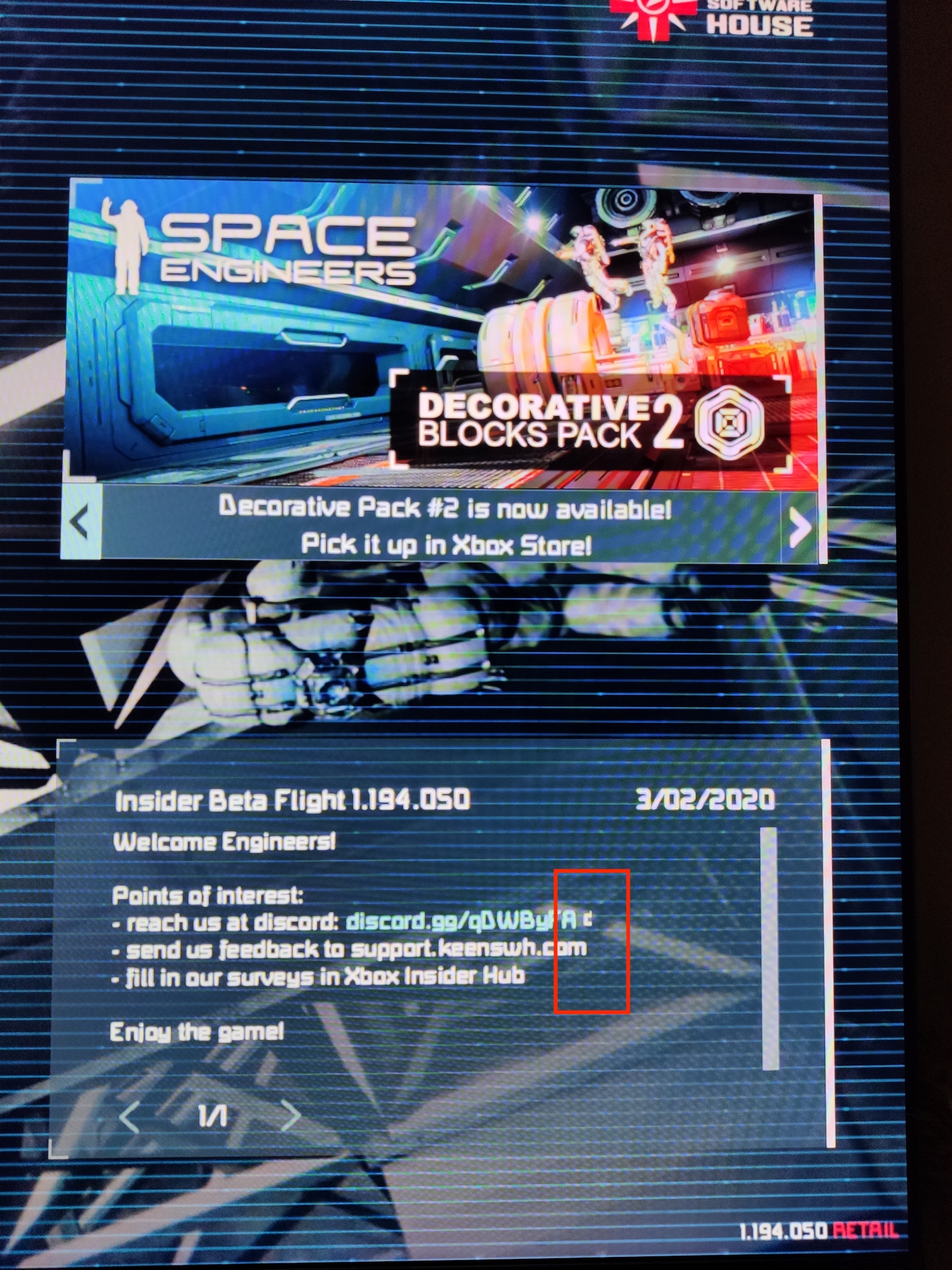 Minor issue here but on the Xbox One Beta (Build 1.194.050 RETAIL) the text behind the discord text link is cut off and cannot be read.