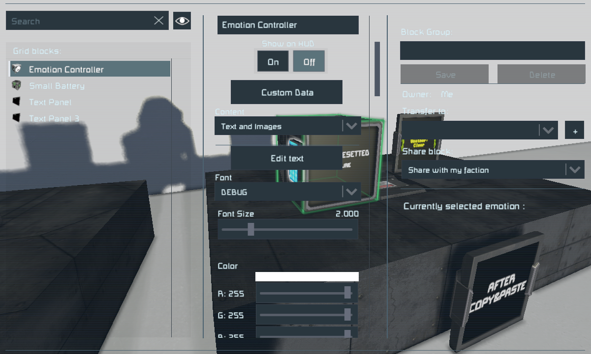Emotion Controller (EmC) from Automatons DLC has a bug that resets its Content Type in options to "Text and Images". It happens just by copying the grid with EmC and pasting it again. It saves the App and its options (Options for "Text and images" are saved too), but resets the content type to default one as demonstrated in screenshots below.
