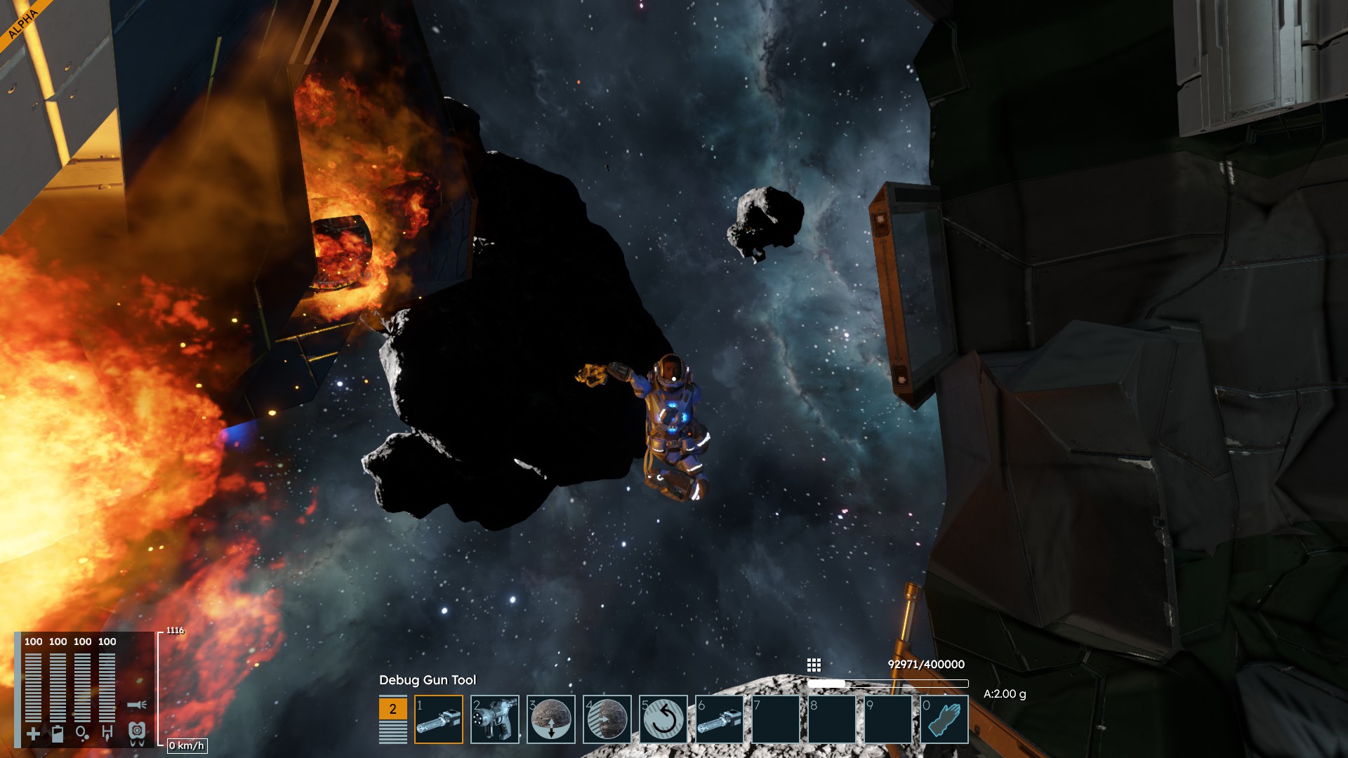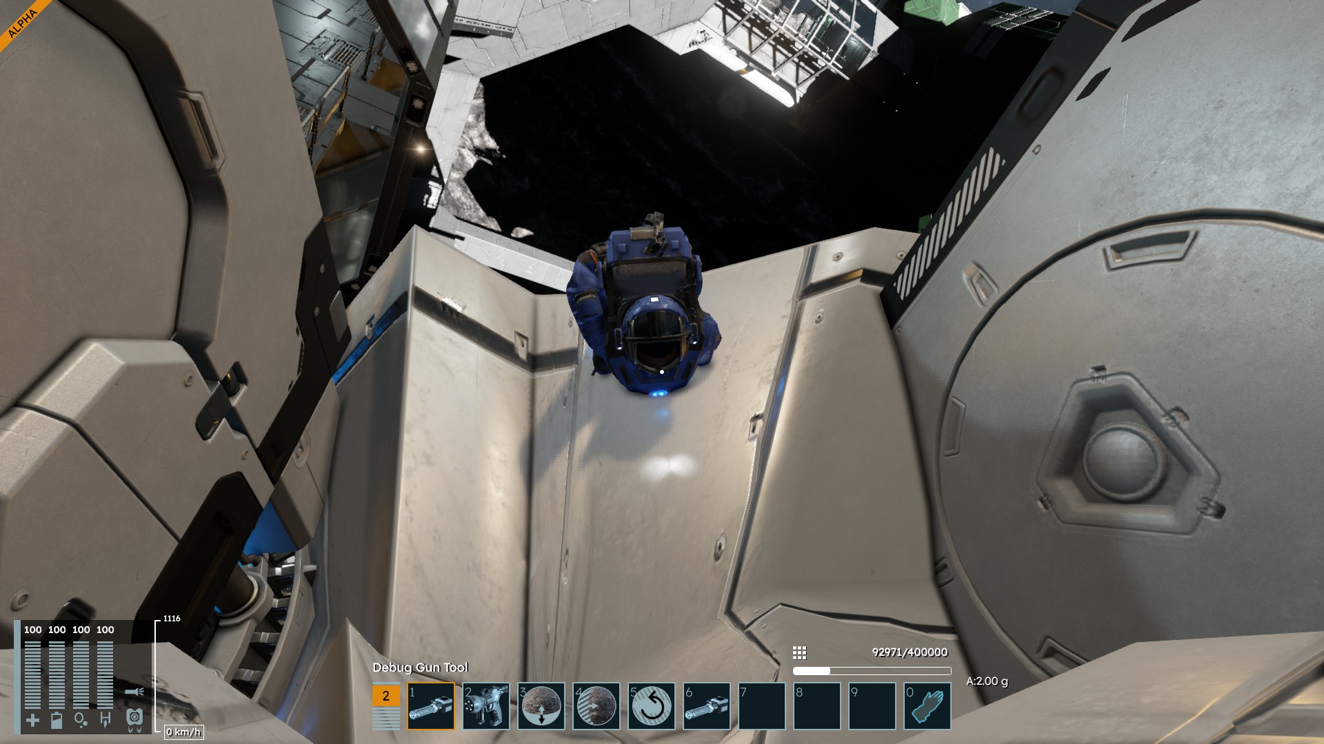 Crashed the blue ship into the station at 300 m/s and my character started wobbling, and i was unable to stand on any solid object, i phased right through them
