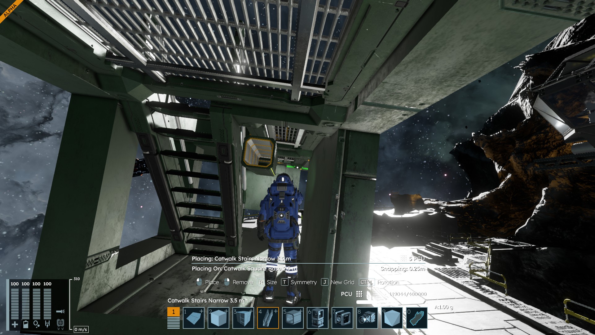 For example, fly into the front of the red ship above the cockpit in the space above the windows and below the grated catwalk where the area is super small. Then with a block in hand trying to place it turn and look around the space and it will Violently shake and glitch you through blocks. Must be some kind of collision thing.