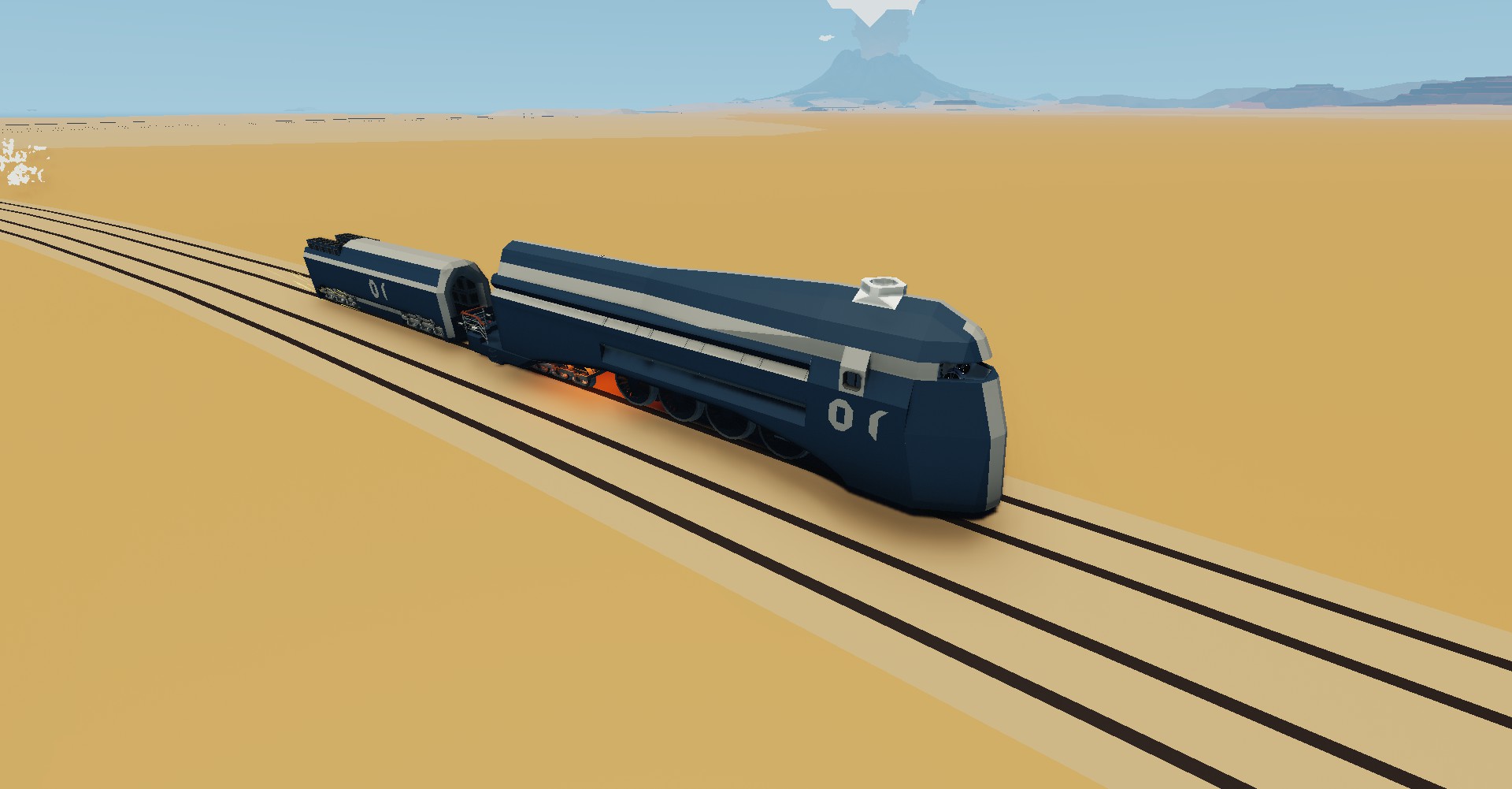 I have included pictures of 2 of my vehicles from stormworks(it uses a 25cm grid but the shapes work no matter what grid size) , both locomotives, the grey uses the vanilla 1x1 1x2 and 1x4 slopes and their associated pyramids which come in 1x1 1x2 variants for each slope length, the blue locomotive uses slopes and pyramids added by a mod which includes 1x3 (which is missing from the base game) and 1x5 upto 1x16.