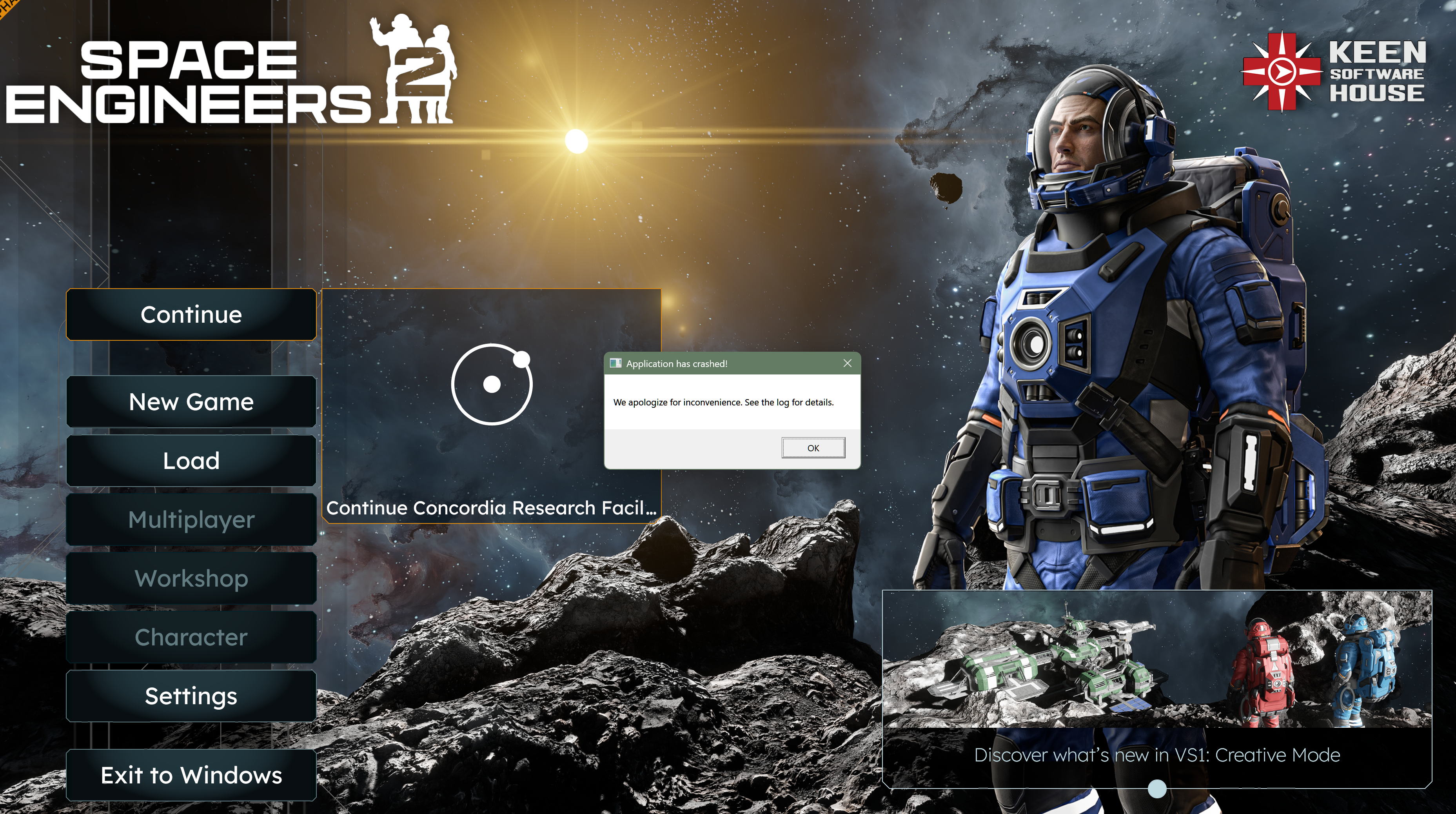 Once done, launch the game and check if the issue still occurs. If it does, please send us the latest SpaceEngineers2_ and _Render12 files, along with the CrashReport_ file.