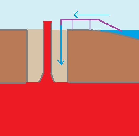 I imagine a hollow planet filled with lava, with passages leading from this lava to the surface, directly into vents. Naturally, it's not the lava itself that's escaping from the depths, but rather a magma shaft that emits cooling lava, creating a new layer of earth to prevent excessive leaks. If we were to dig everything, I don't even know how it would work. A self-cooling shaft of hot earth jutting out in the middle of a large hole created over many hours of digging. What if someone built a pipe from the sea and then flooded it all? What would happen? There's plenty to experiment with here. :)