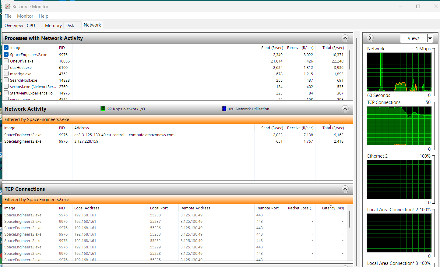 While in the G menu, anything clicked on whether it is a block or blueprint causes TCP connections to increase and communications with Amazon Web Services happens.