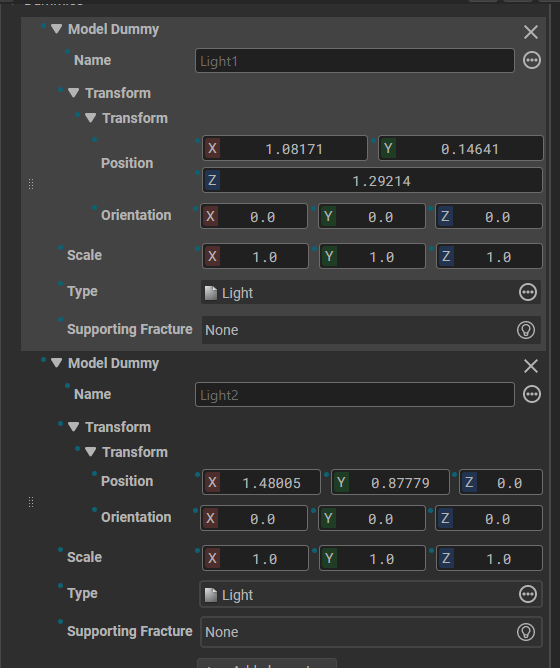 id like to have two separate light sources for the 2 light panels but if i add 2 dummy's for example