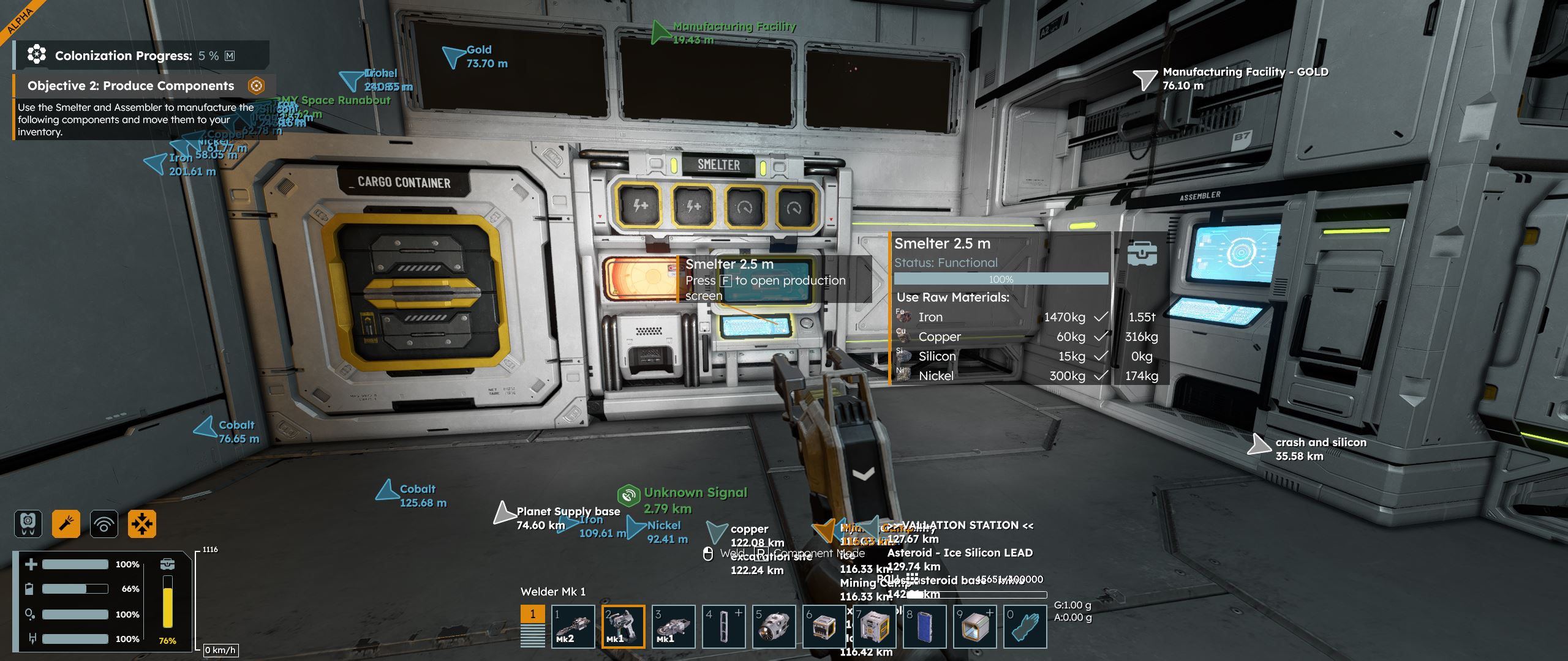 "Use the Smelter and Assembler to manufacture the following components and move them to your inventory."