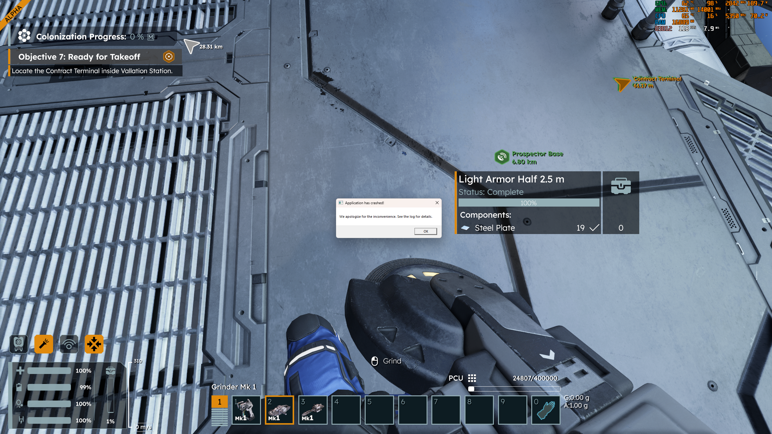 We would also appreciate a save file of your game before the game crashes. You can find your saves here: C:\Users\(your_username)\AppData\Roaming\SpaceEngineers2\AppData\SaveGames