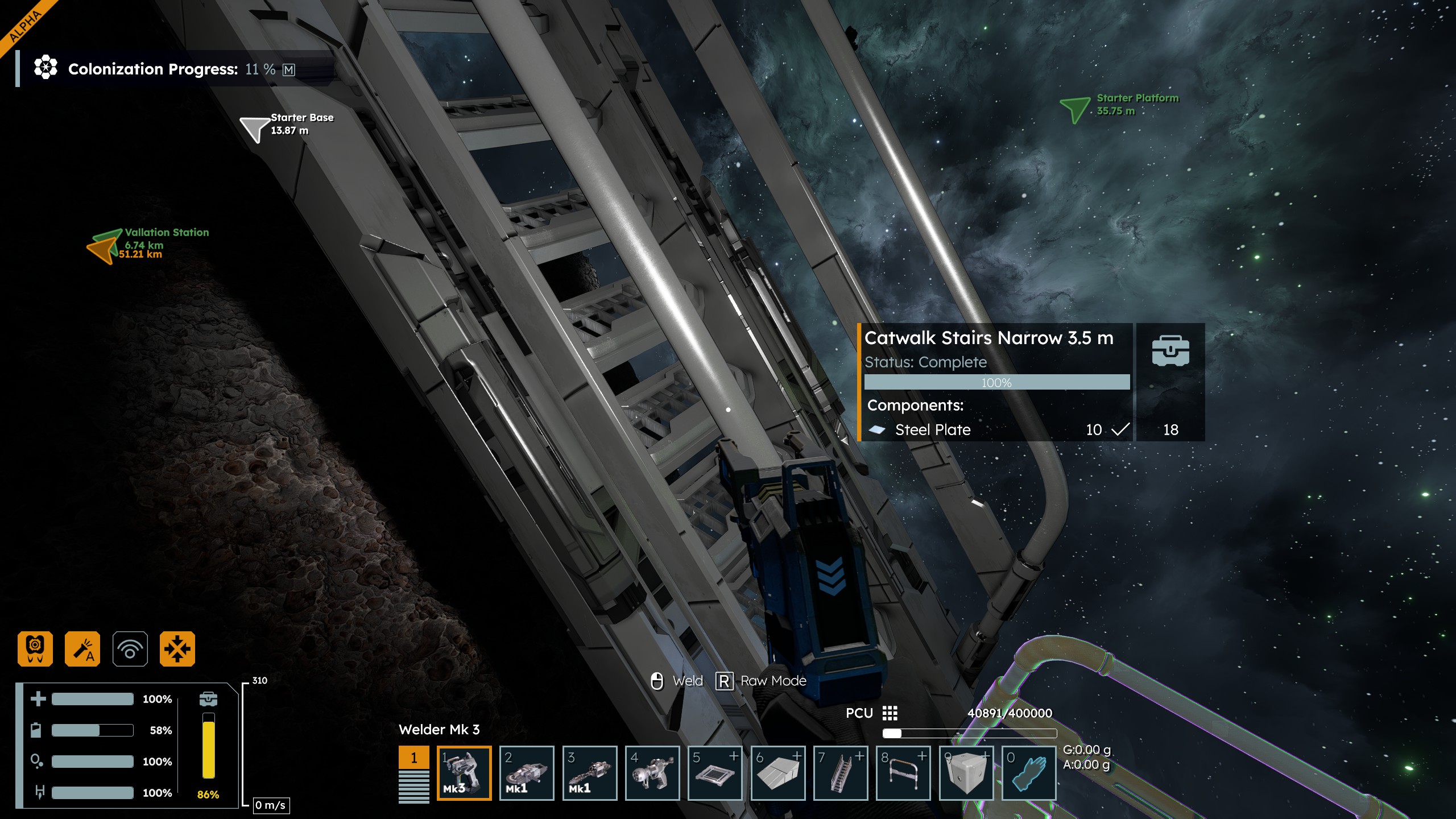 Was working on a build in Survival and noticed that the final build state for the Catwalk Stairs Narrow 3.5m block seems to be missing its final build state, despite having "complete" status and all materials welded.