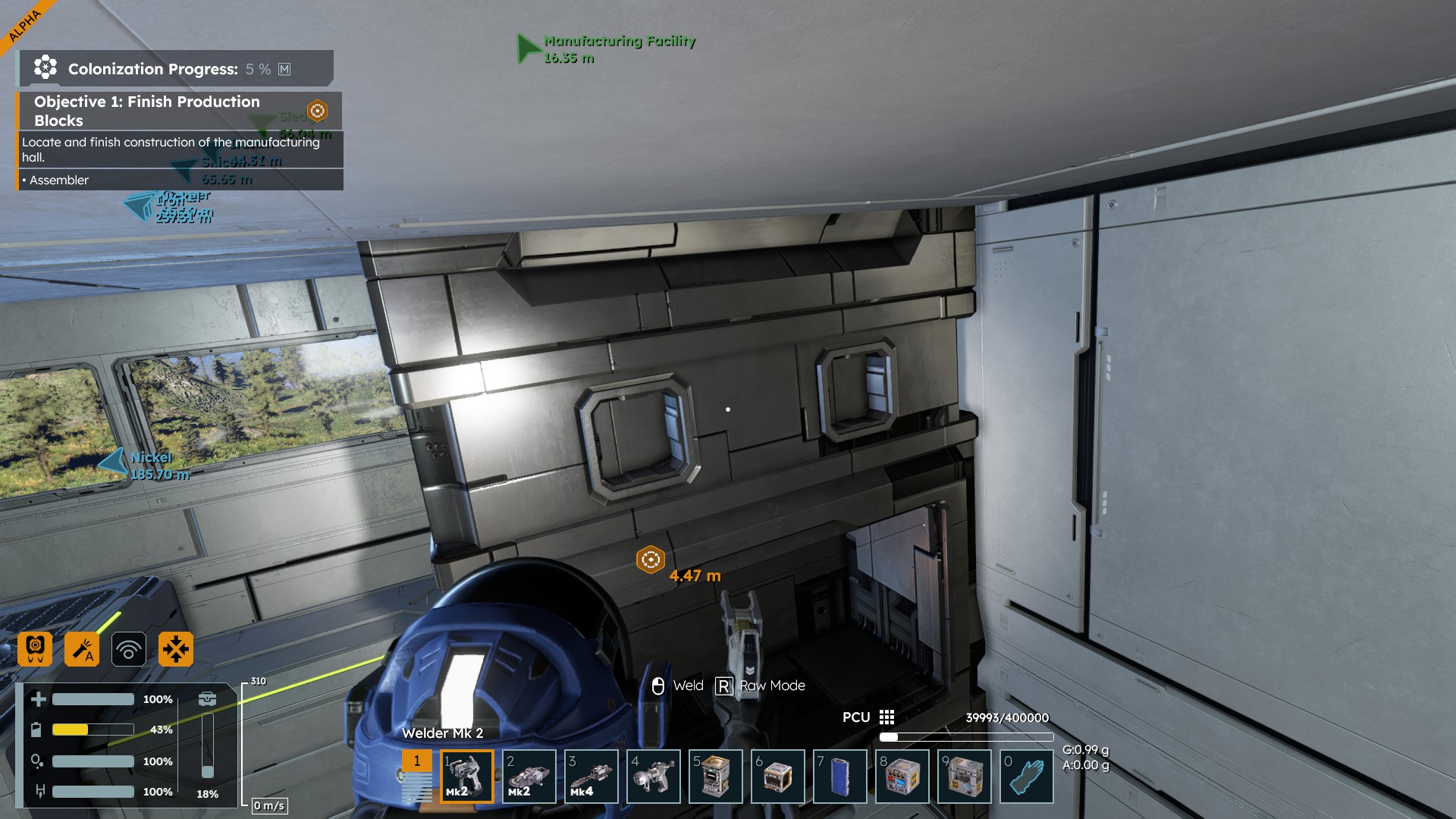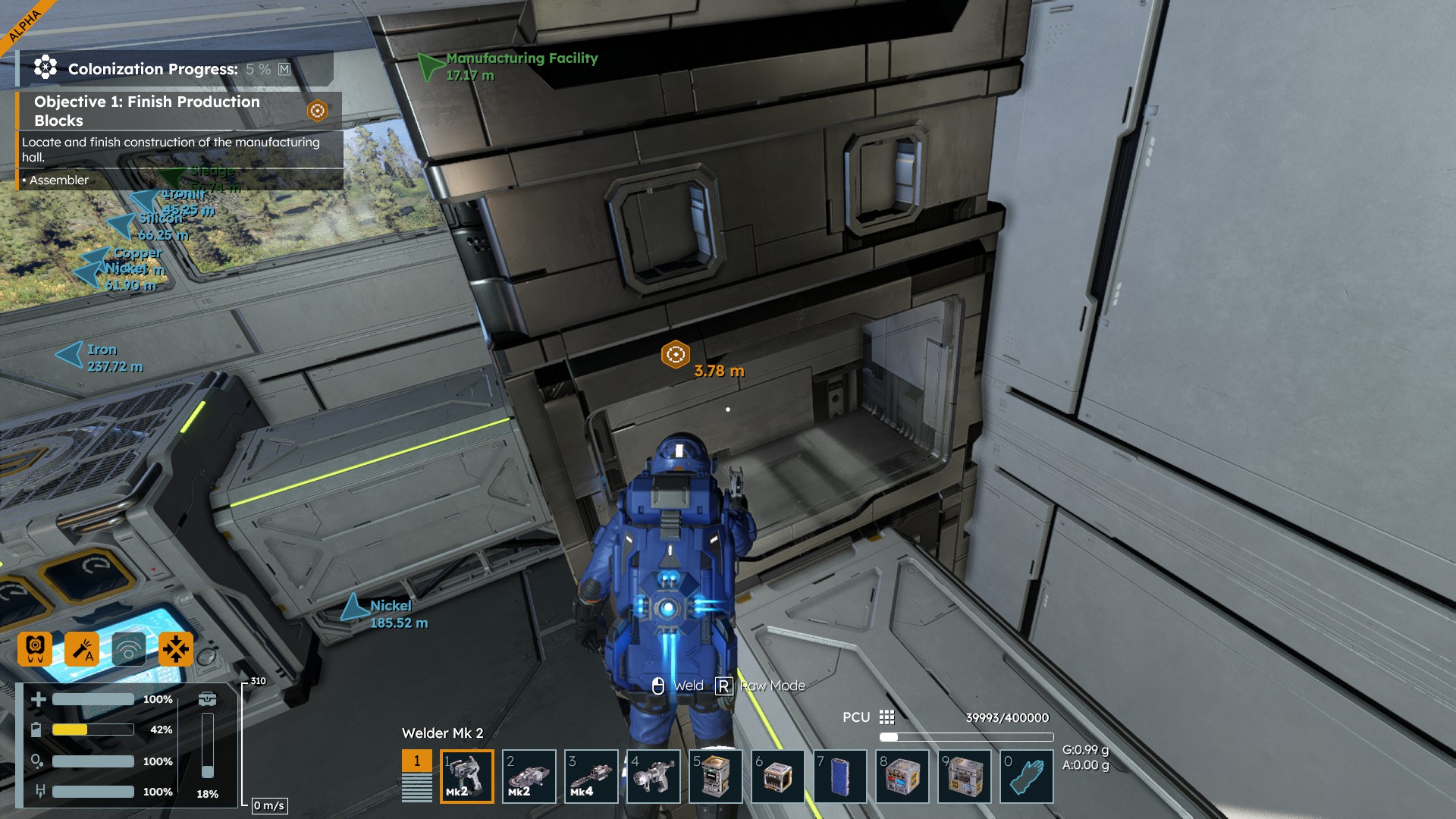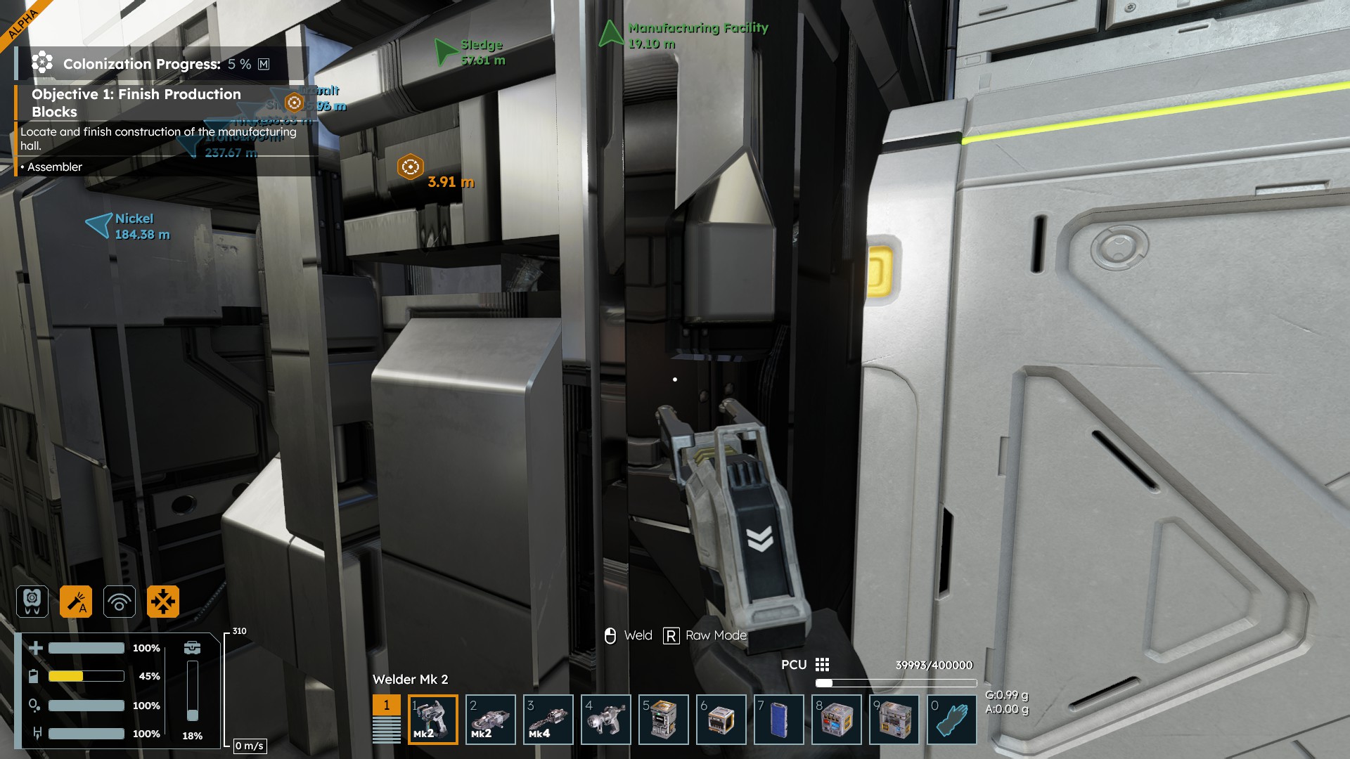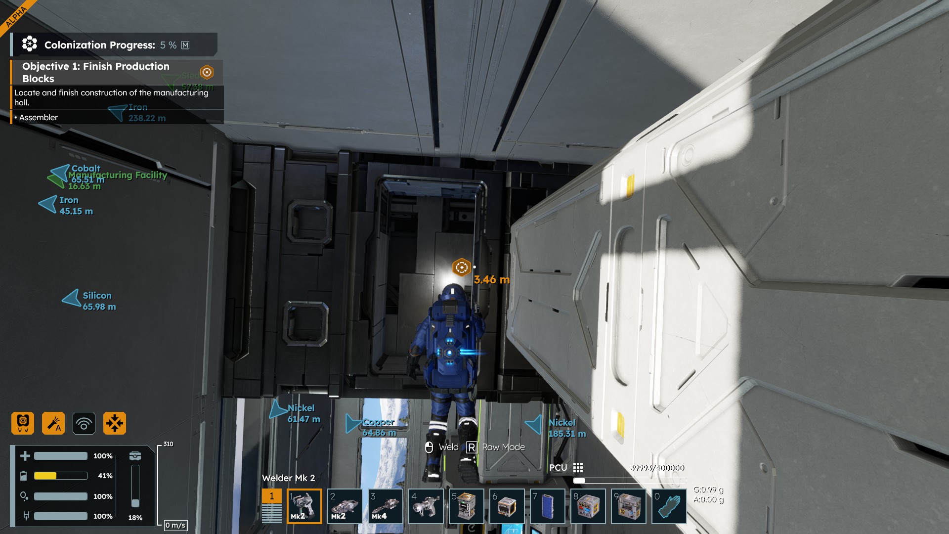 I thought at first maybe it was just the Mk1 welder and grinder really sucked. But I have Mk2 of both now, and it's still crazy difficult to find a point on some blocks that'll let you actually use your tools. This is super frustrating with static blocks, and pretty much impossible with moving ones. Just check out all these screenshots of me trying to weld the assembler for the Manufacturing Facility contract. The cargo container for the same contract was bad, too, but not quite so ridiculous.
