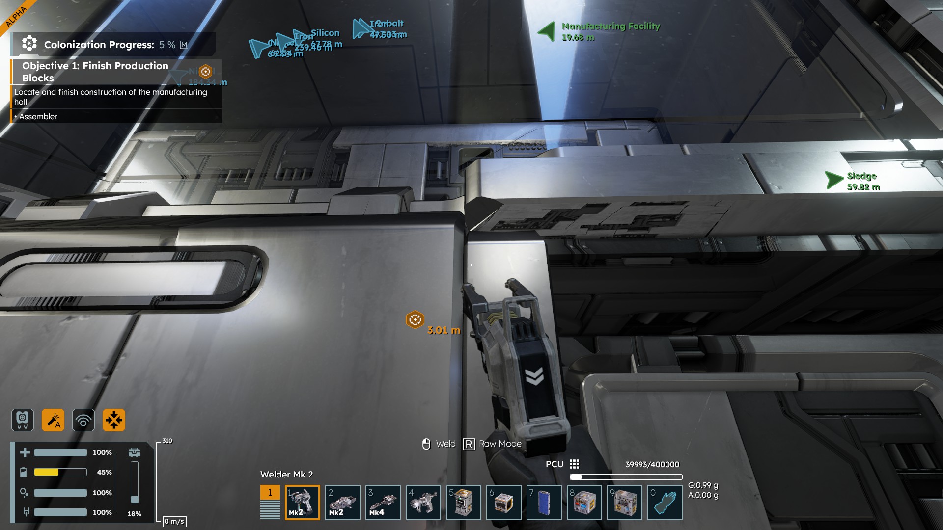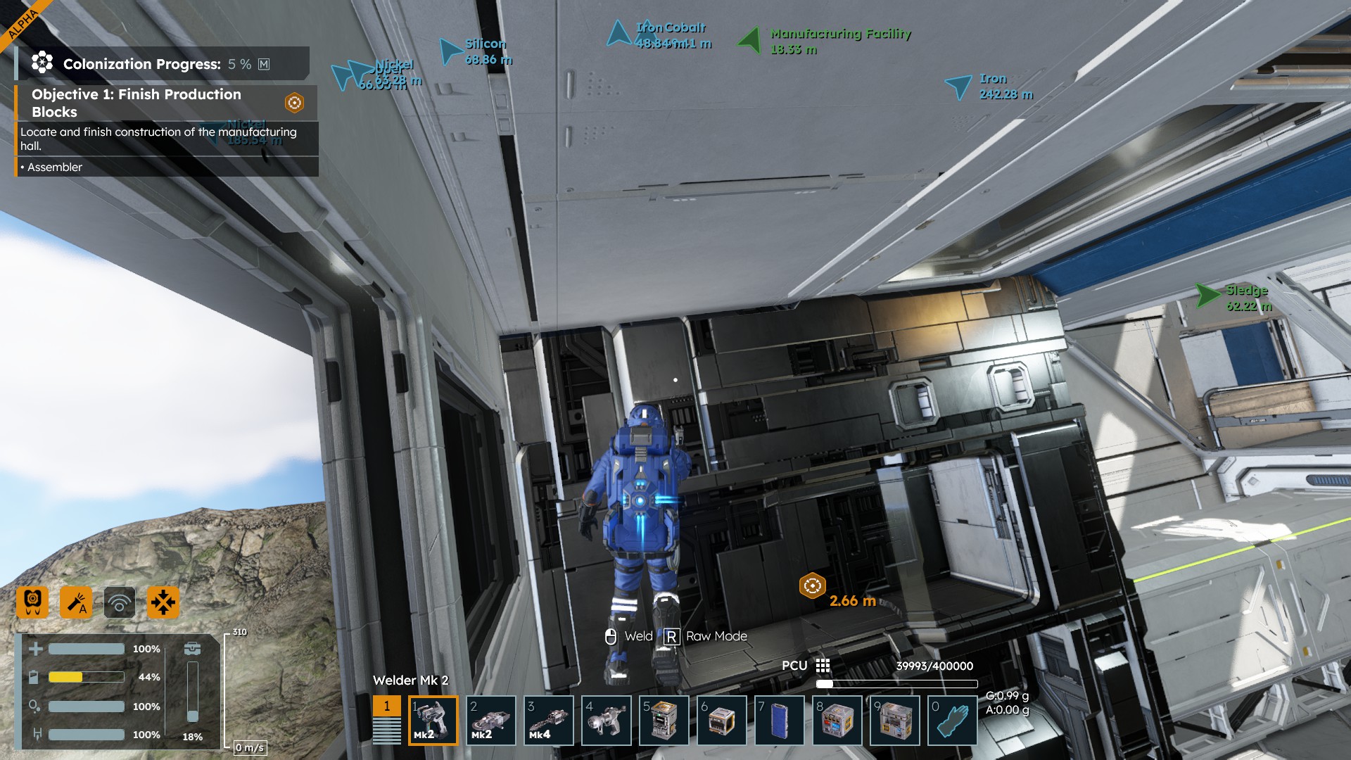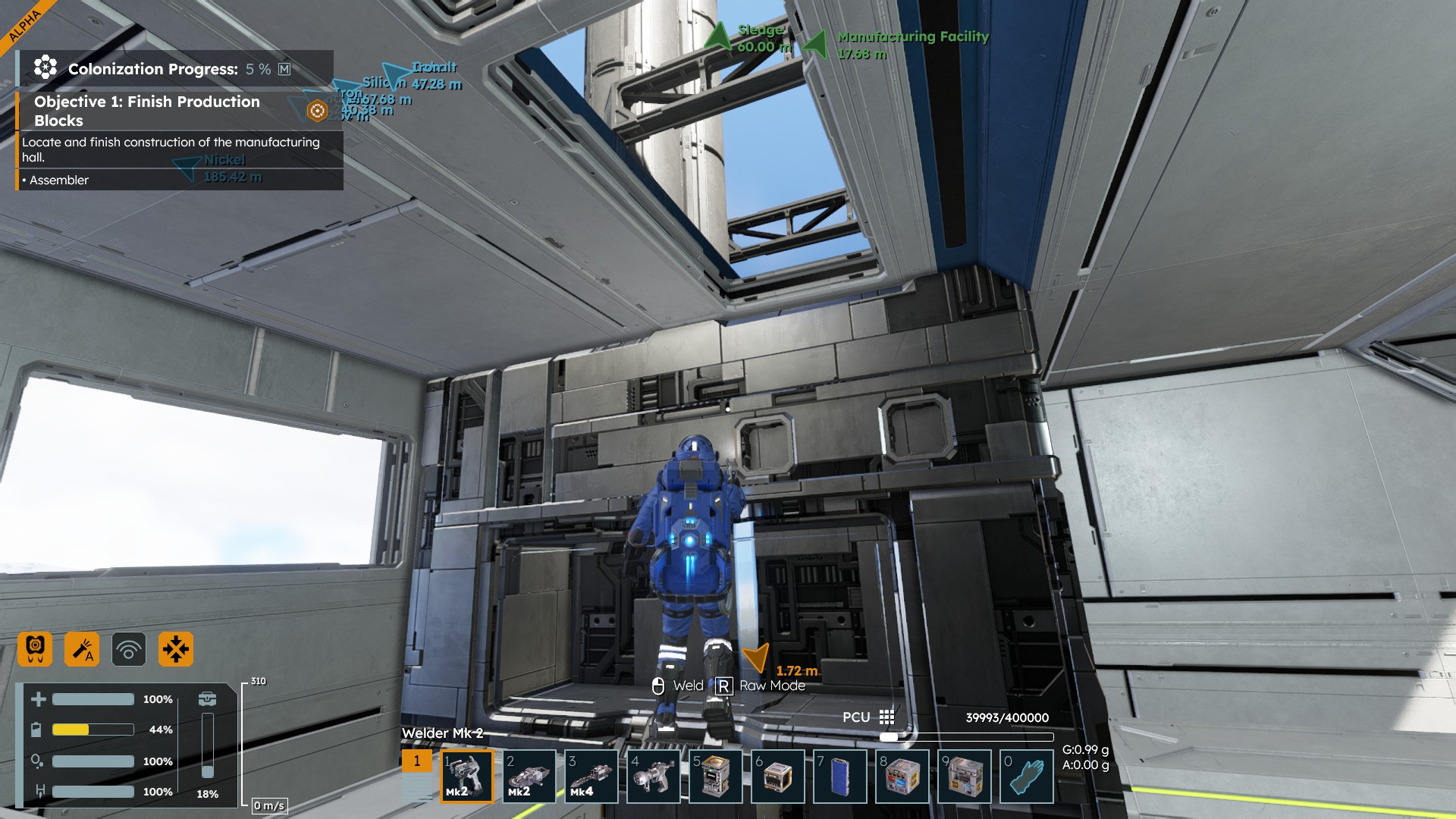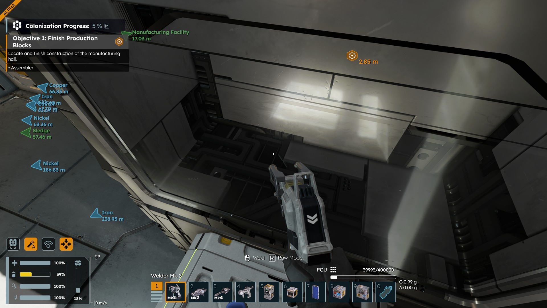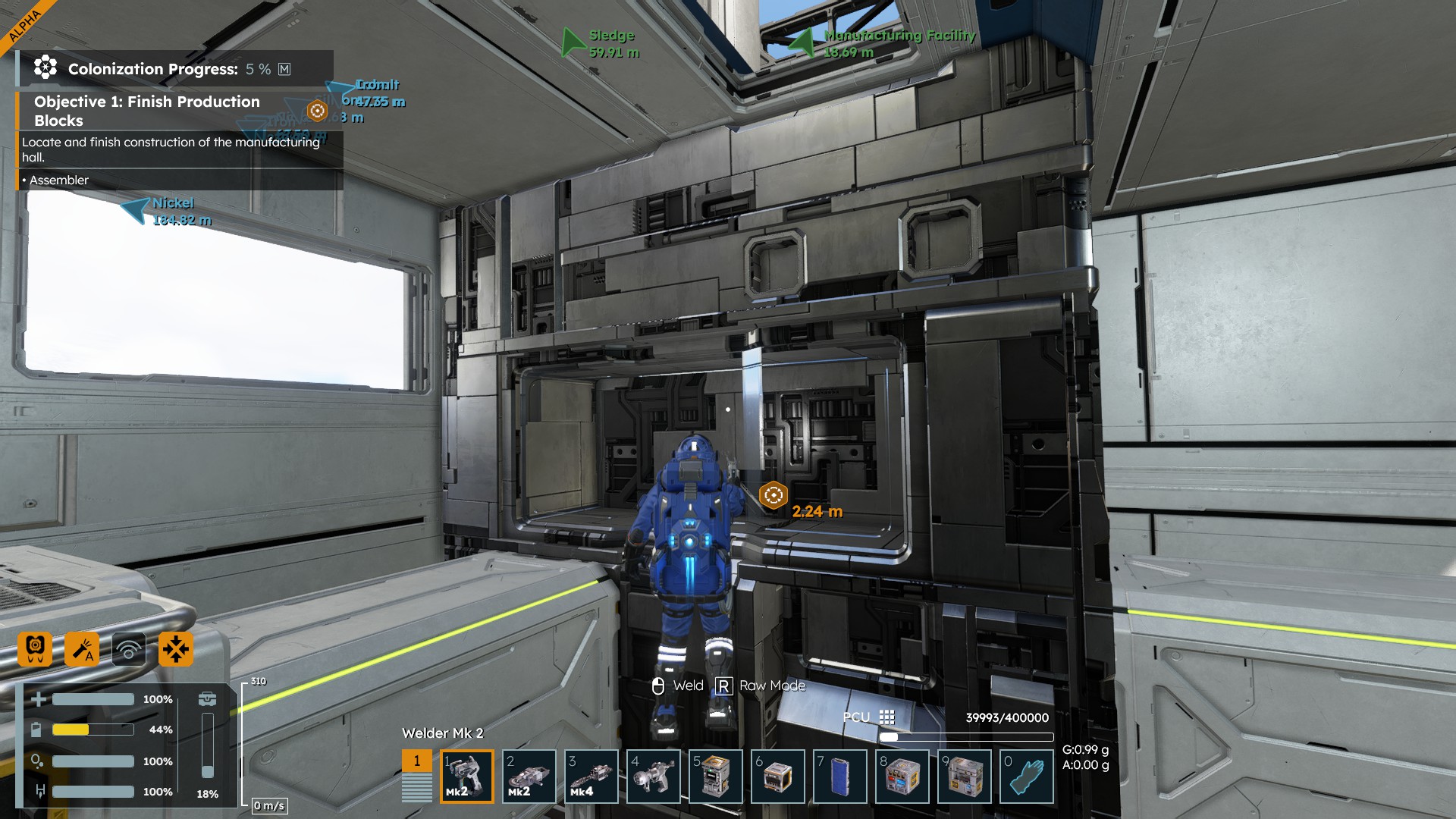 I thought at first maybe it was just the Mk1 welder and grinder really sucked. But I have Mk2 of both now, and it's still crazy difficult to find a point on some blocks that'll let you actually use your tools. This is super frustrating with static blocks, and pretty much impossible with moving ones. Just check out all these screenshots of me trying to weld the assembler for the Manufacturing Facility contract. The cargo container for the same contract was bad, too, but not quite so ridiculous.