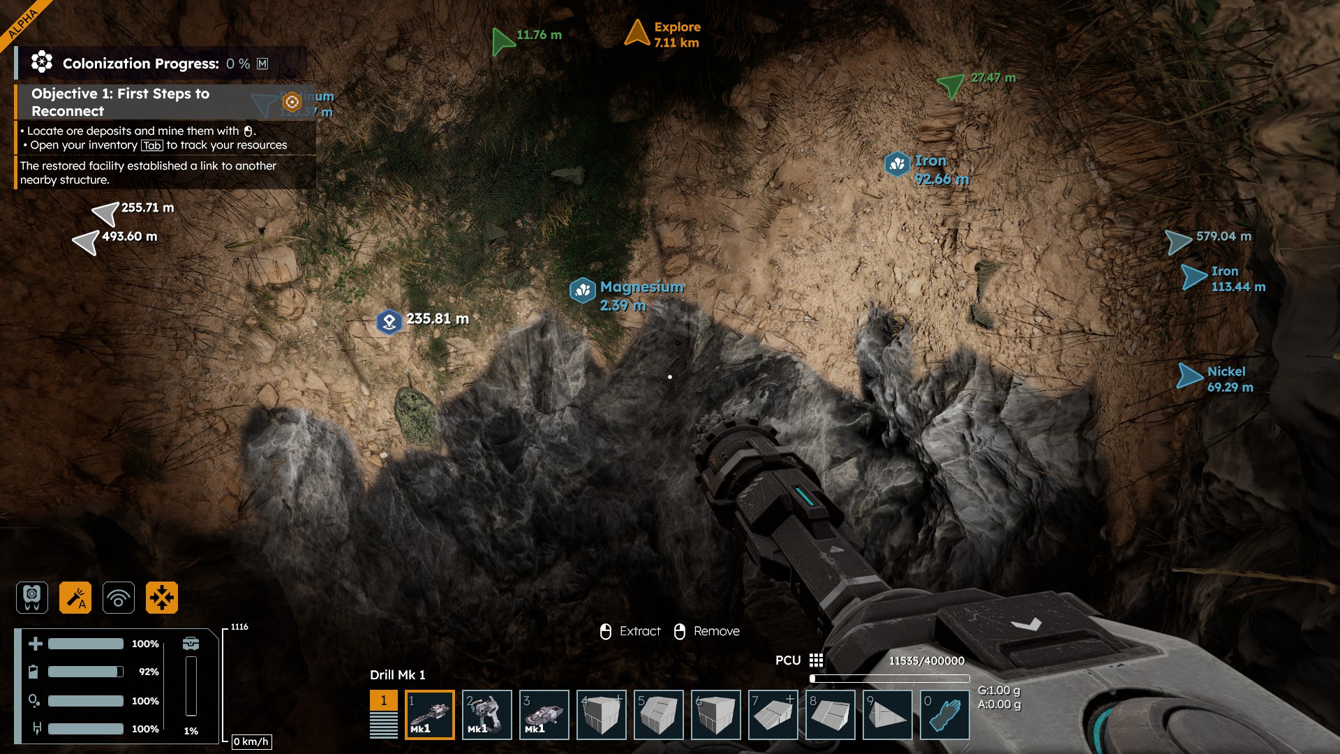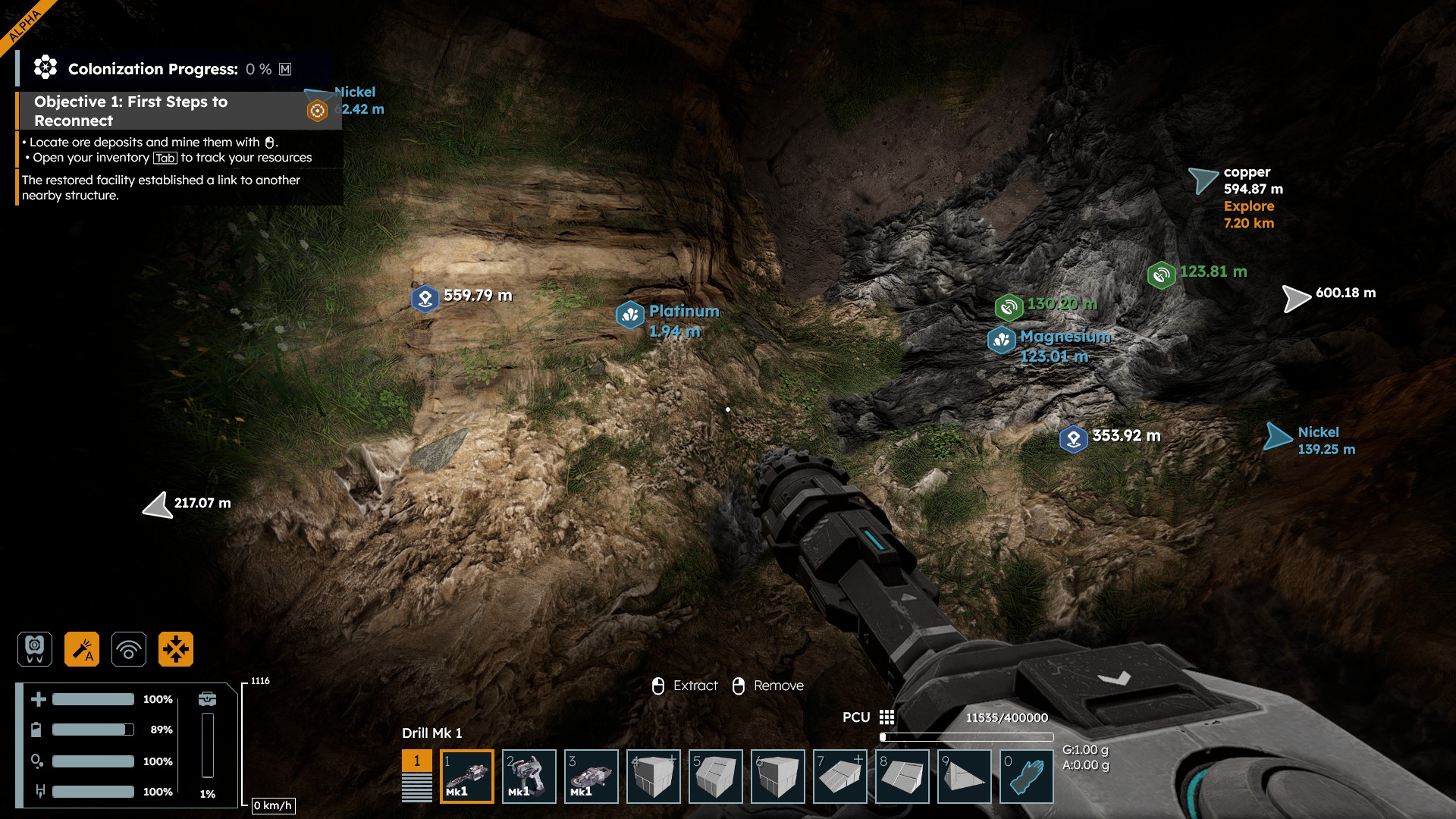 There are multiple ores detected near the hydrogen engine lab. I found Magnesium and Platinum markers but no actual ore or resource.