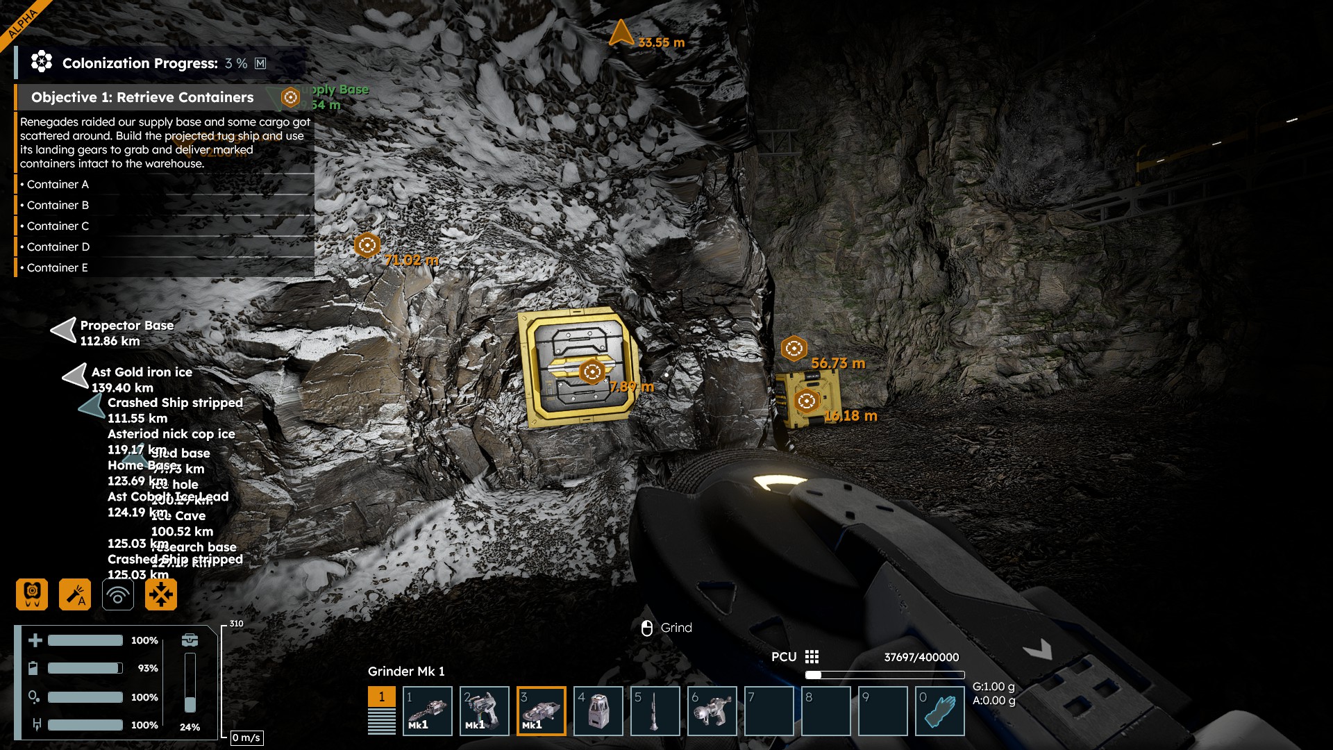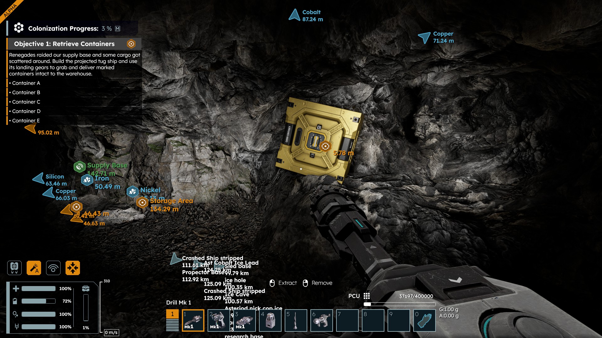IN the mission where we have to move the cargo containers into the warehouse 2 of them spawn in solid rock (one of them 50 or so meters inside the mountain). Though I enjoyed the challenge of trying to dig them out every time I got close to them they were pushed a bit further in until I manged to get them to partly slide through the tunnel wall.