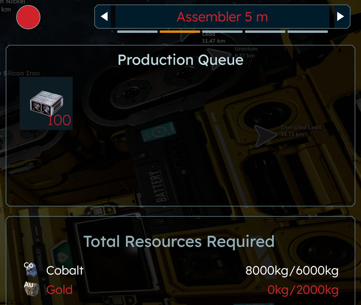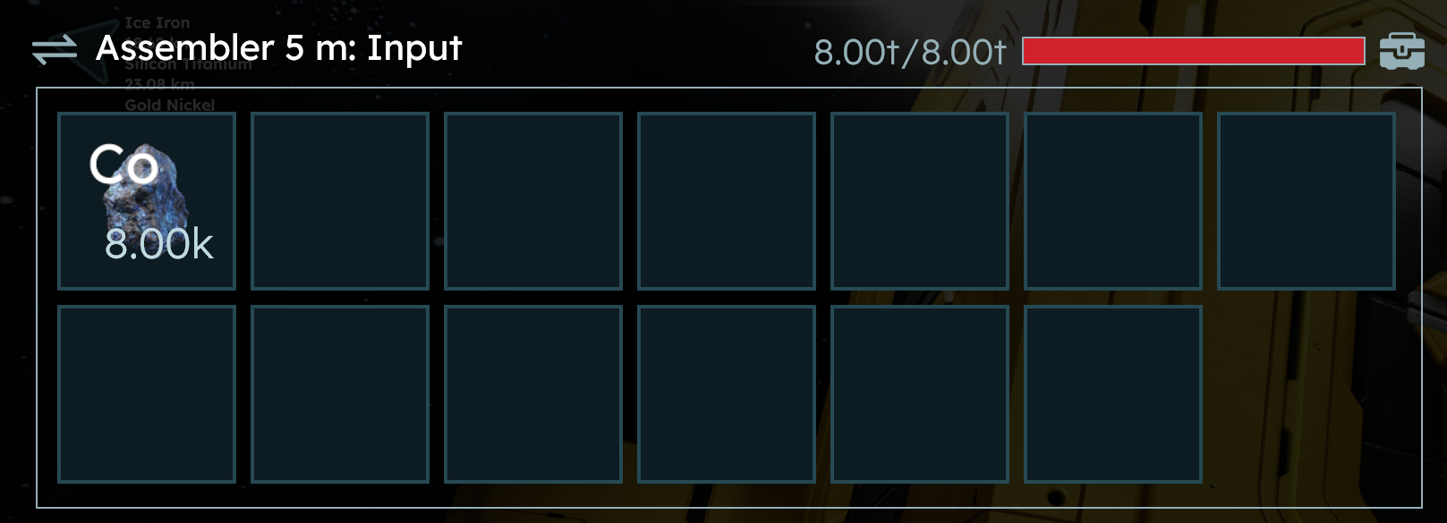 They fill up on one resource and not having room for other resources needed for production to start. This needs to be a balanced. Here it will need to pull 60kg co, 20kg Au but in portions that equal less than the 8t capacity of the production machine.