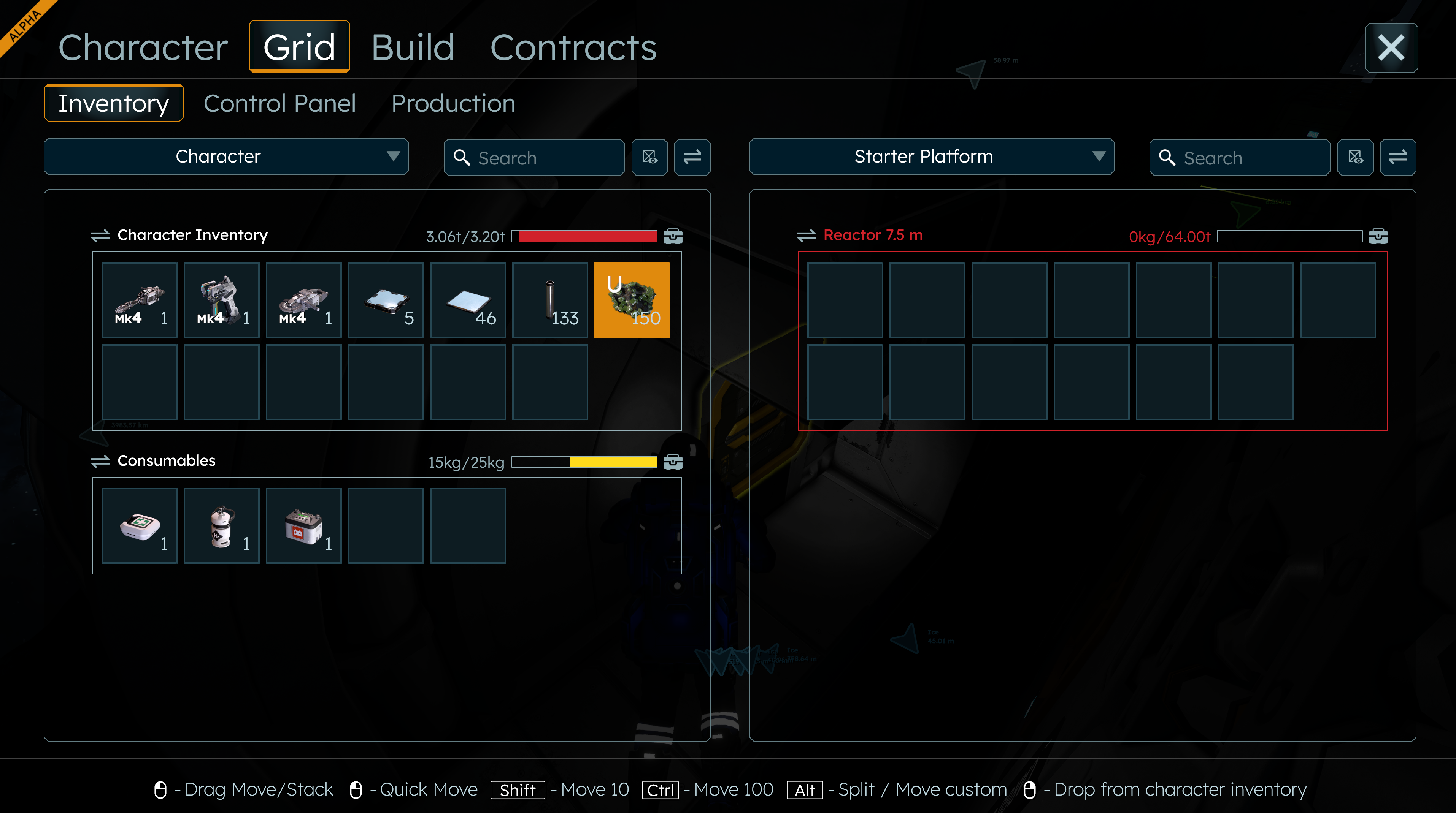 I constructed a new 7.5m Reactor at the Starter Platform to consume some uranium ore. I have 150 units of ore.
