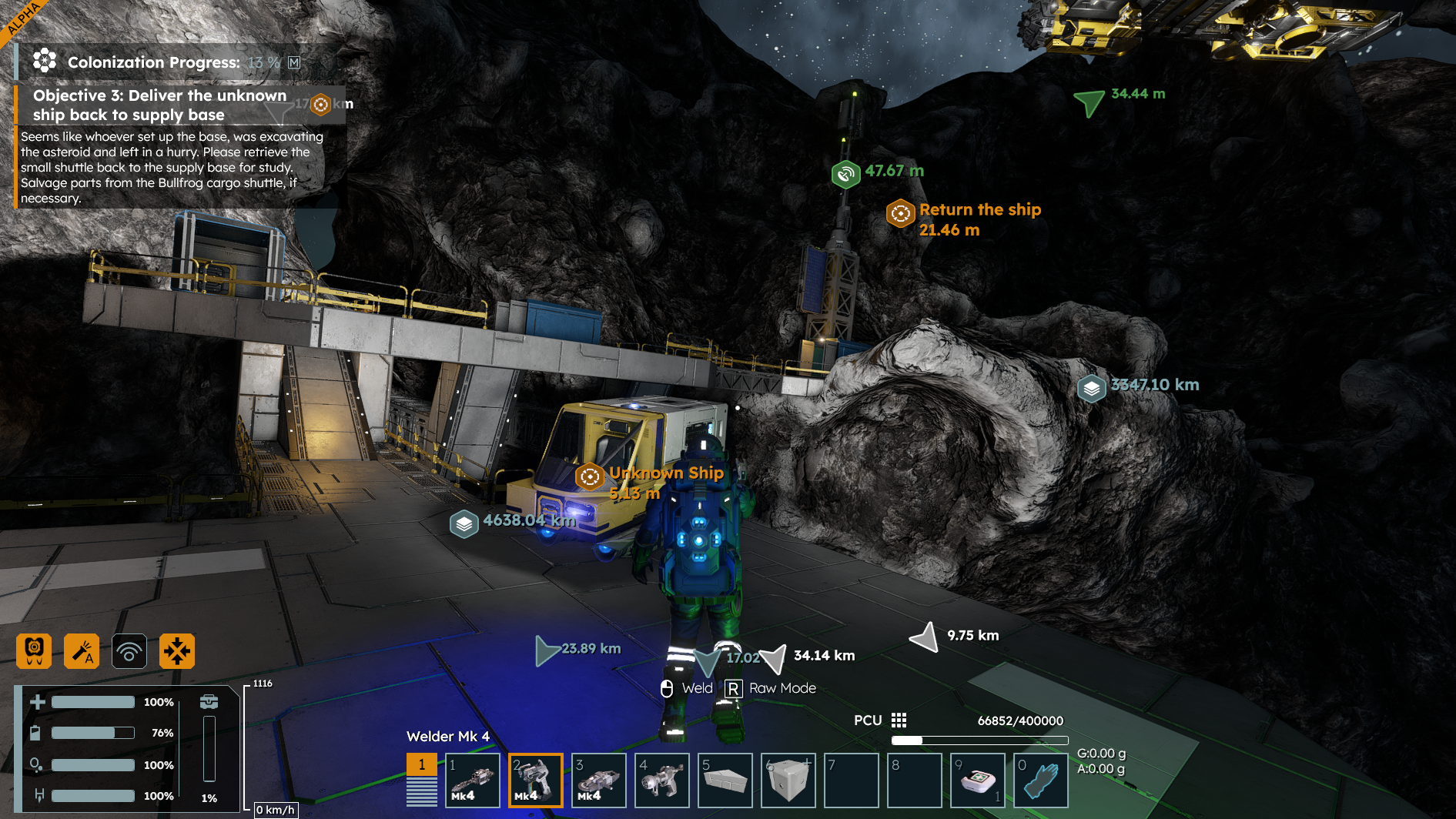 Delivering the Unknown Ship back to the Supply Base does not complete for me. I have flown that thing all over the base and landed on the landing pad but it just will not complete.