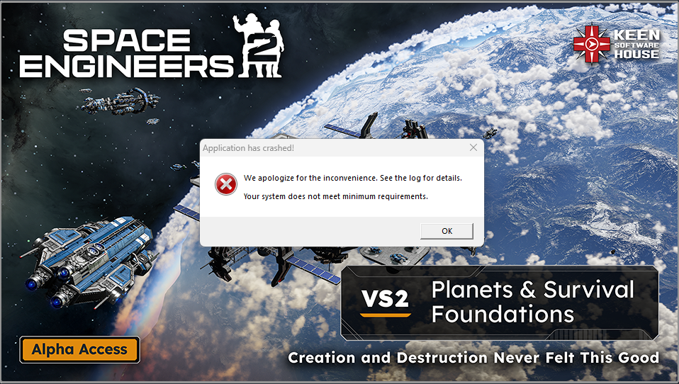 Setting the space engineers version back to VS1.5 does allow me to run the game. VS2 won't.